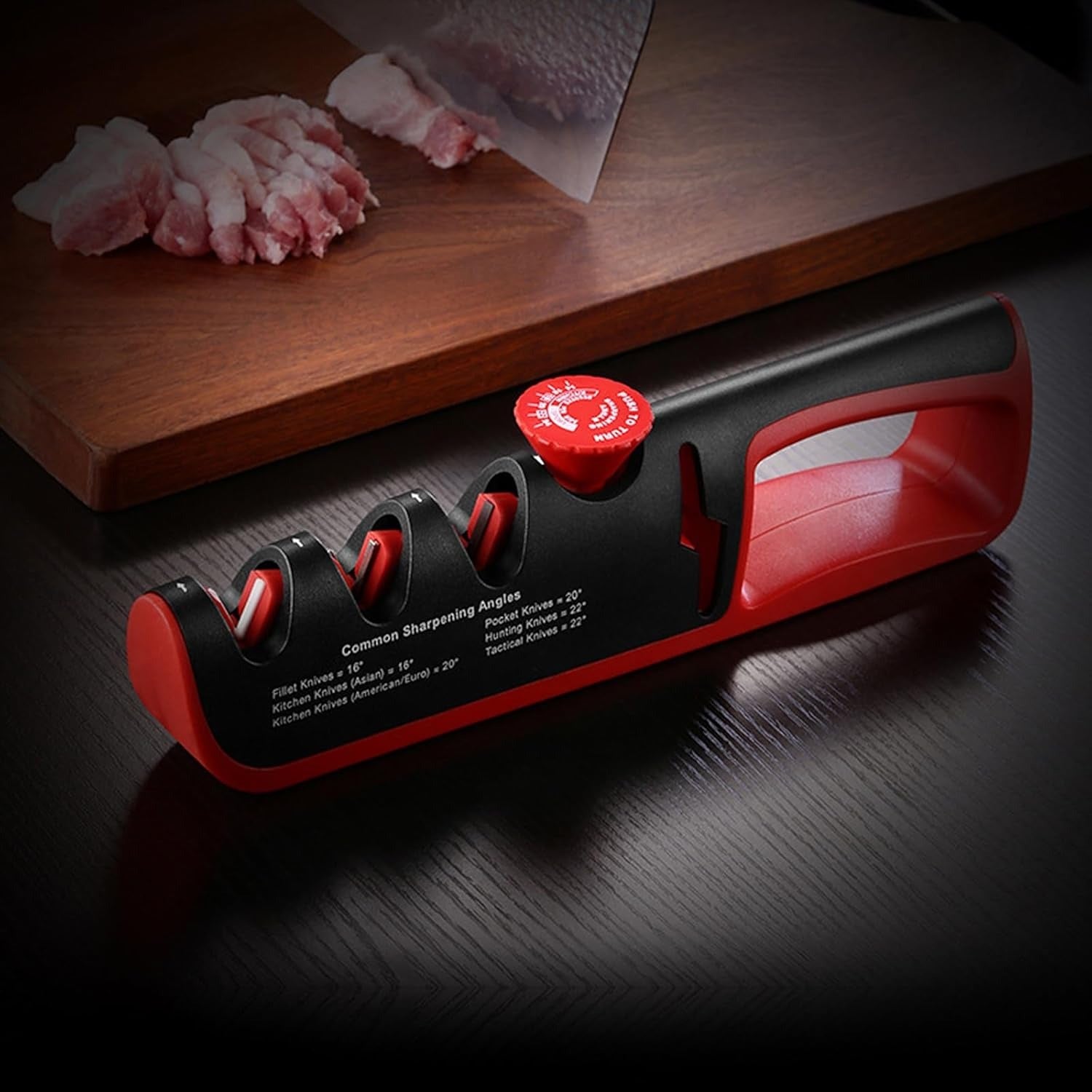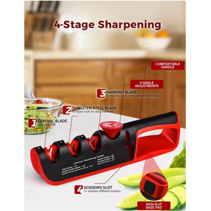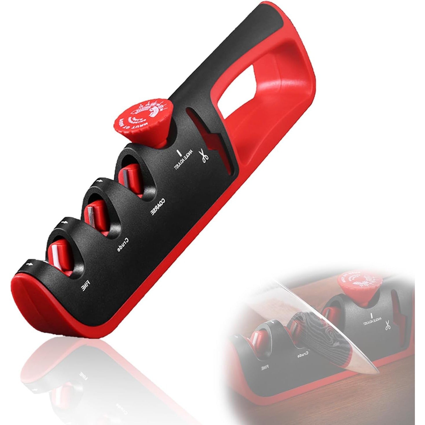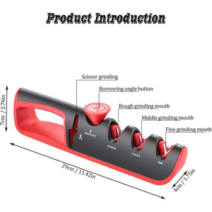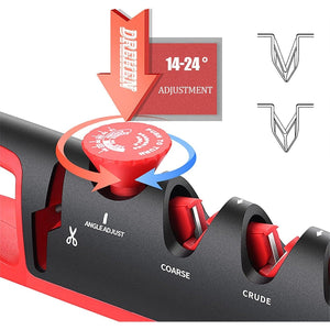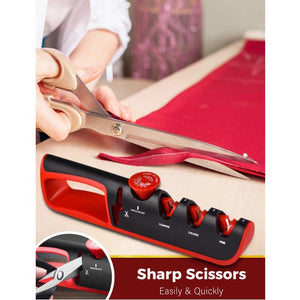 Ascutitor de Cutite 4 in 1, Multifunctional, Polizor pentru Foarfece, Otel Tungsten si Diamant, 6 Niveluri Reglabile, culoare rosu