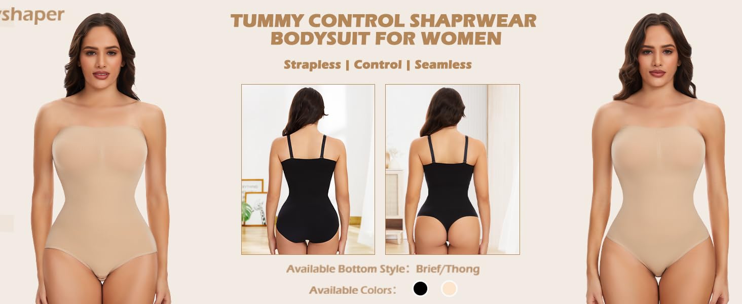 Body modelator dama Joyshaper, marimea L, Nylon, fara bretele, cu tanga, culoare bej