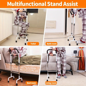 Cadru de ajutor Ridicare Seniori Kajkey, Reglabil, 6 Trepte, Pliabil, Multifunctional, Otel Carbon, culoare Alb si Negru