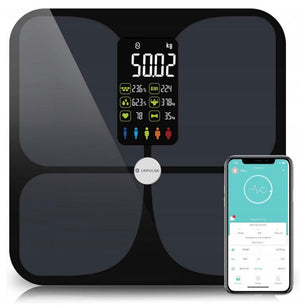 Cantar corporal Lepulse, 15 masuratori, Bluetooth, cu aplicatie, ecran mare, negru