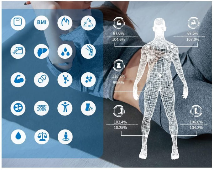 Cantar corporal Lepulse P1, analiza masei musculare, 24 profile, negru/albastru, 180 kg
