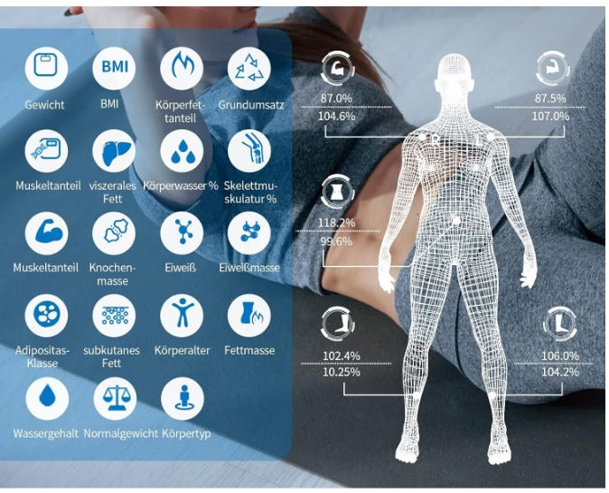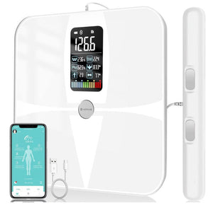 Cantar inteligent cu 8 electrozi, Lepulse, Bluetooth, Analiza compozitiei corporale, Max 180kg, Alb