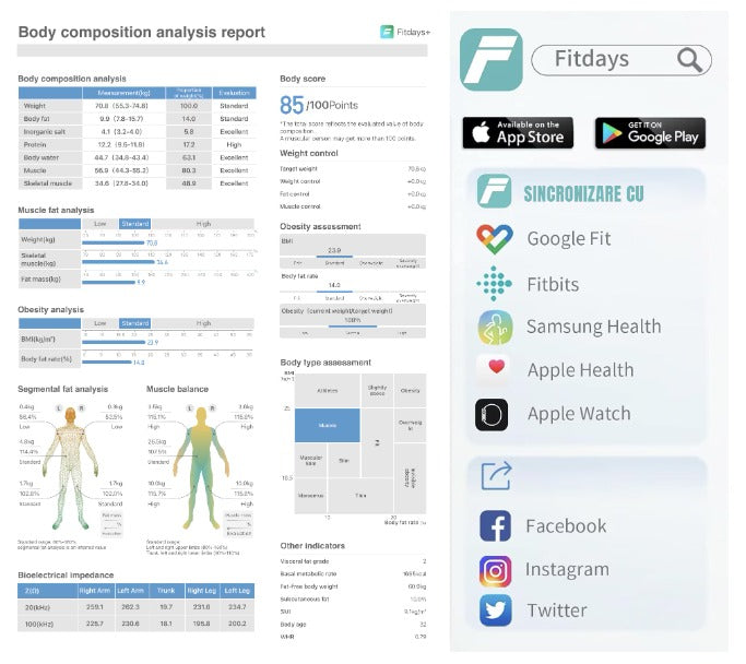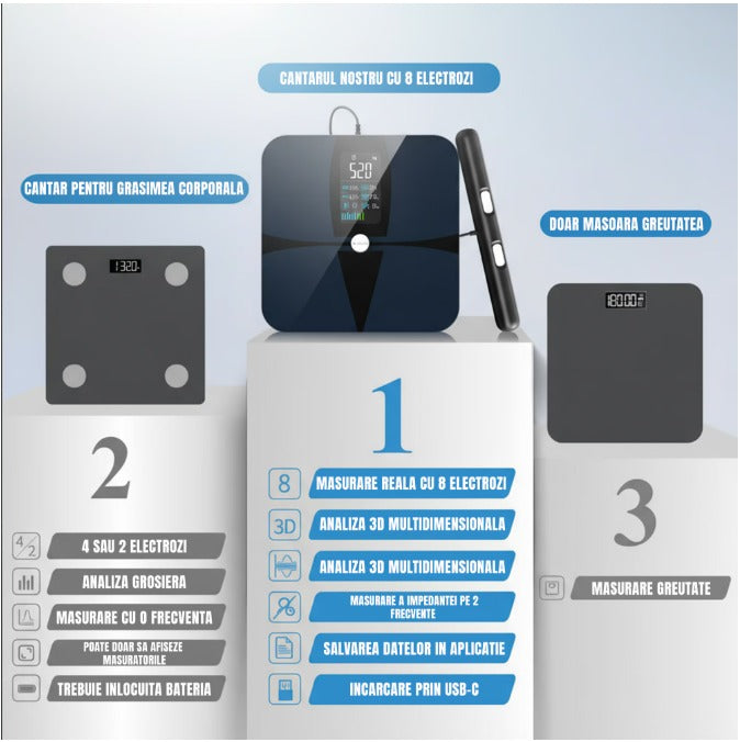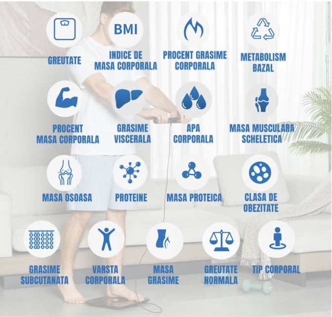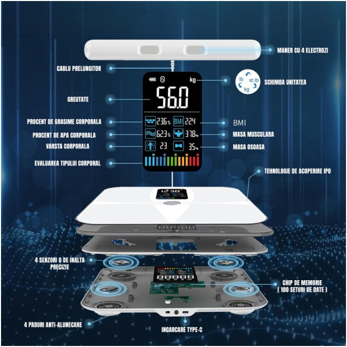 Cantar inteligent LePulse Professional, 8 senzori analiza, 20 indici corporali, raport evolutie utilizator, integrare IOS/Android, alb