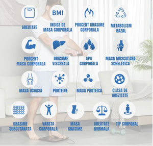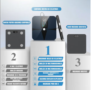 Cantar inteligent LePulse Professional, 8 senzori analiza, 20 indici corporali, raport evolutie utilizator, integrare IOS/Android, albastru