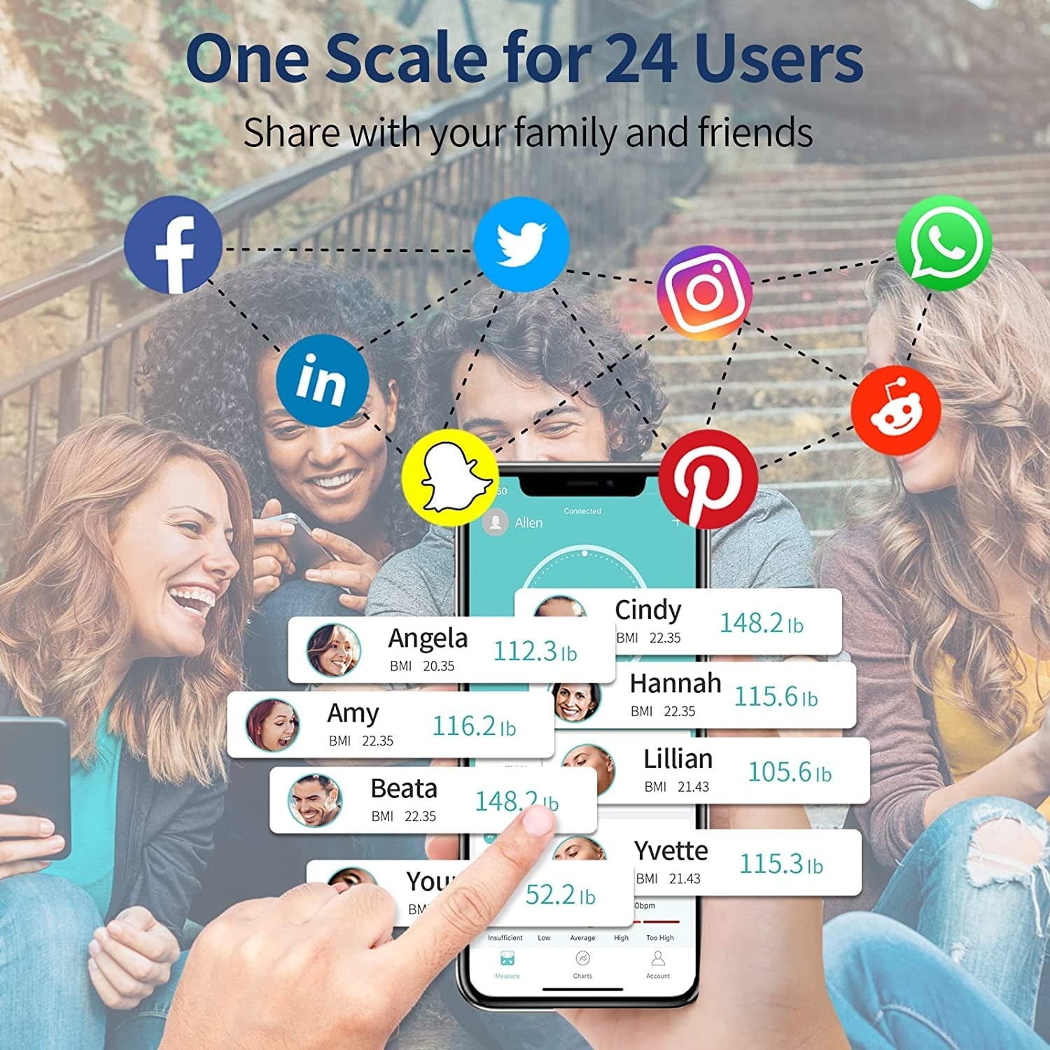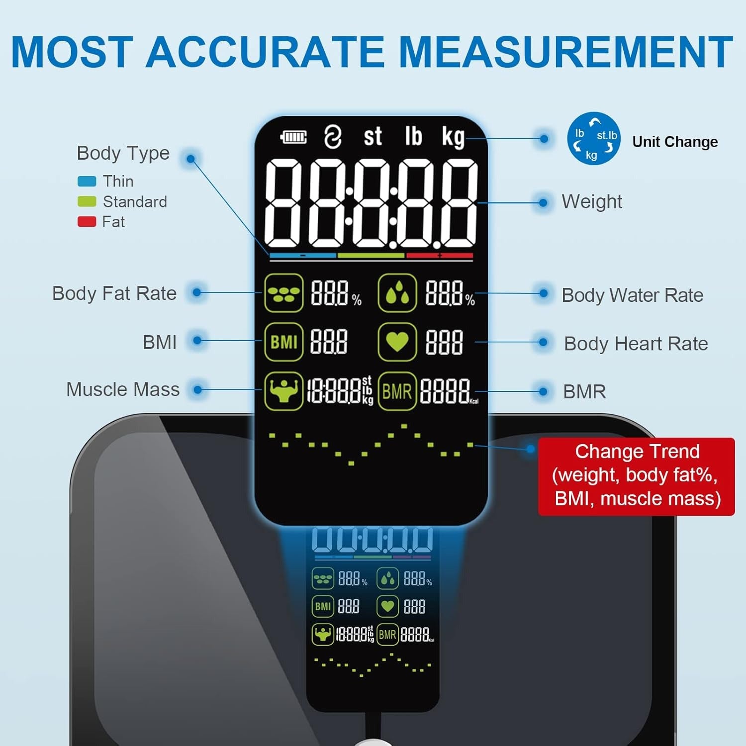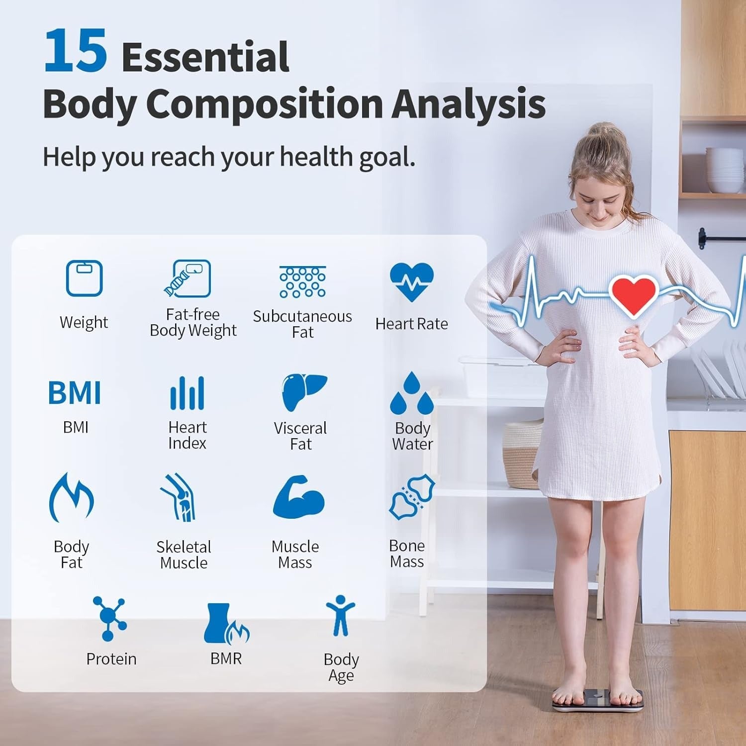 Cantar Smart LEPULSE F4, 180 kg, Bluetooth, 15 indici corporali, ecran LCD mare, analiza grasime corporala, masa musculara, ritm cardiac, aplicatie Fitdays, multi-user, negru