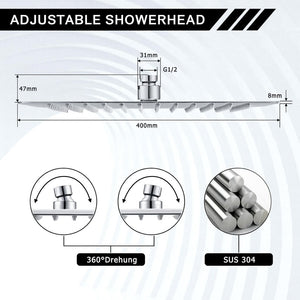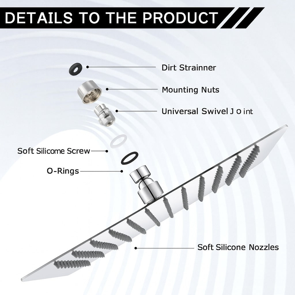 Cap de dus patratos Detbom, 40 x 40 cm, otel inoxidabil 304, rotatie 360°, 324 duze siliconice, jet tip ploaie