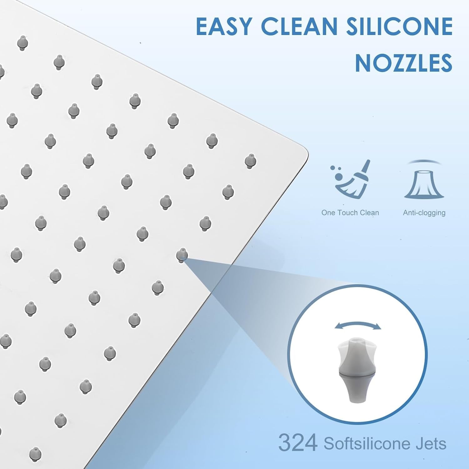 Cap de dus KINLIV, 40x40 cm, tip Ploaie, Otel inoxidabil 304, 324 duze anti-calcar, Crom lucios, rotatie 360°, argintiu