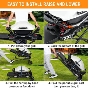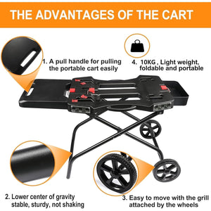 Carucior portabil pentru gratar GFTIME, pliabil, negru, 108x66x34cm