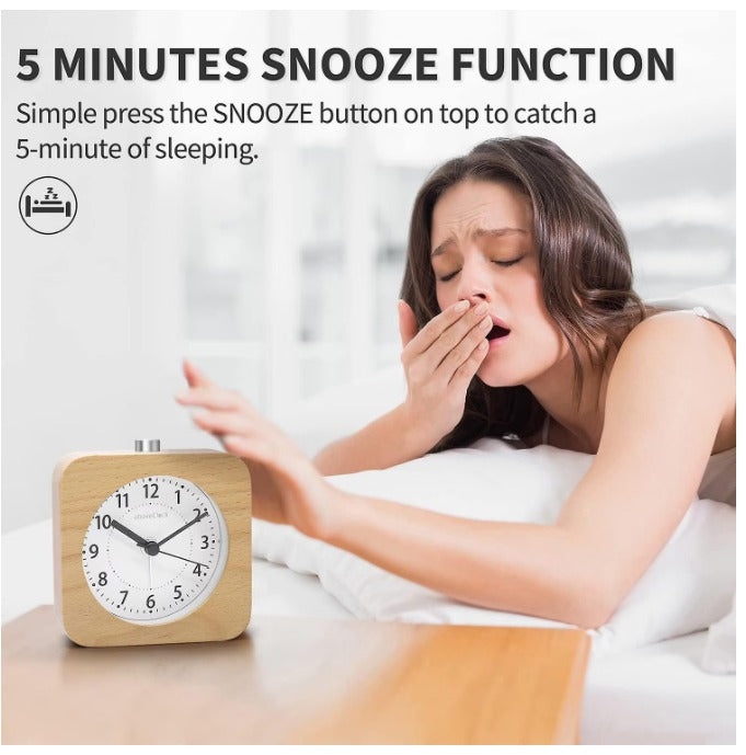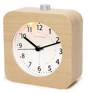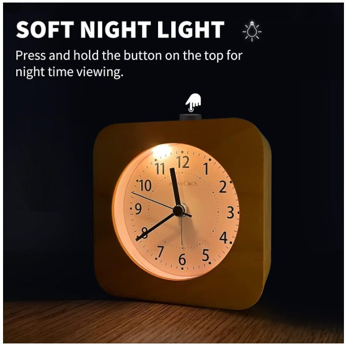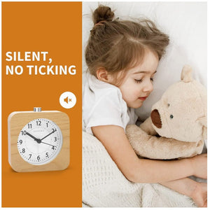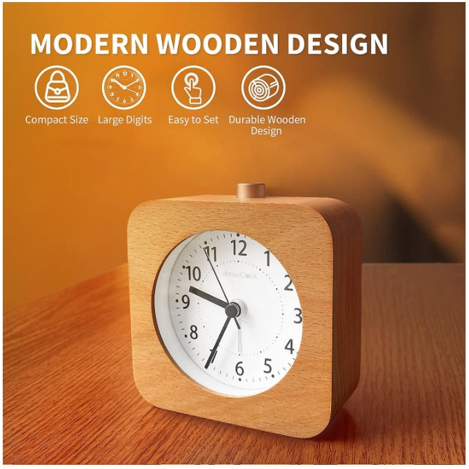 Ceas de birou din lemn, design patrat, functie de alarma silentioasa, lumina de noapte