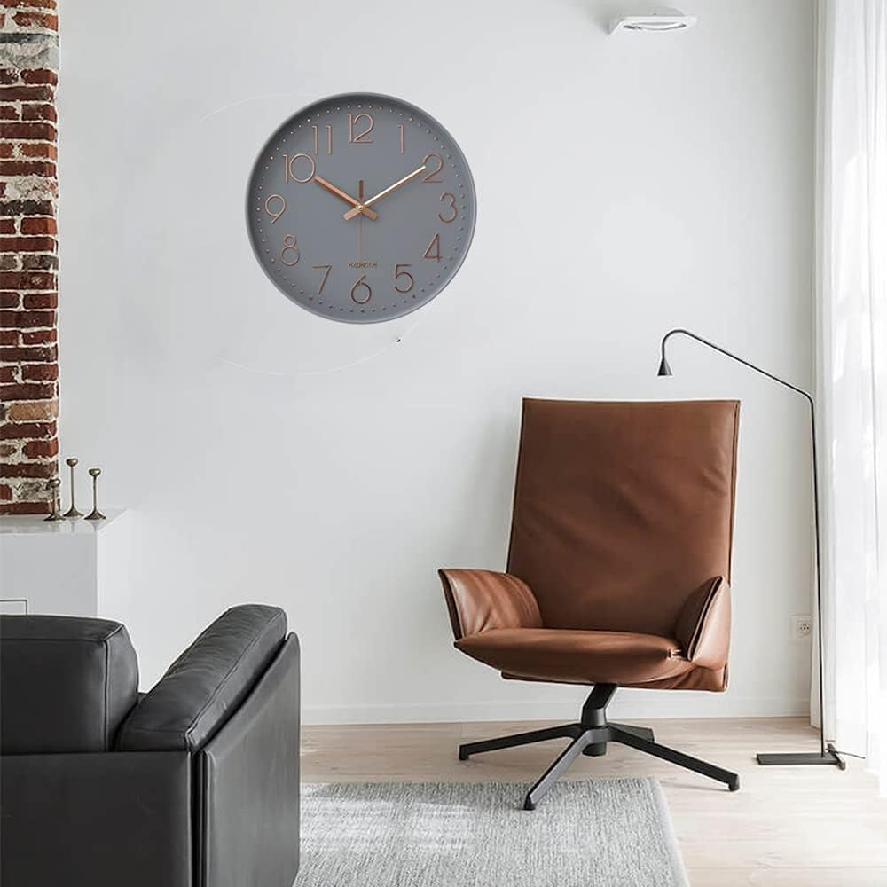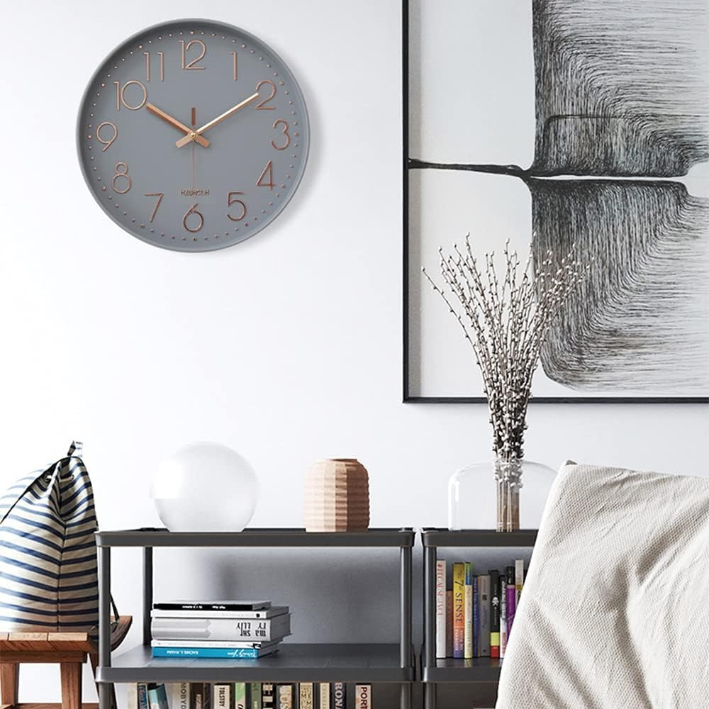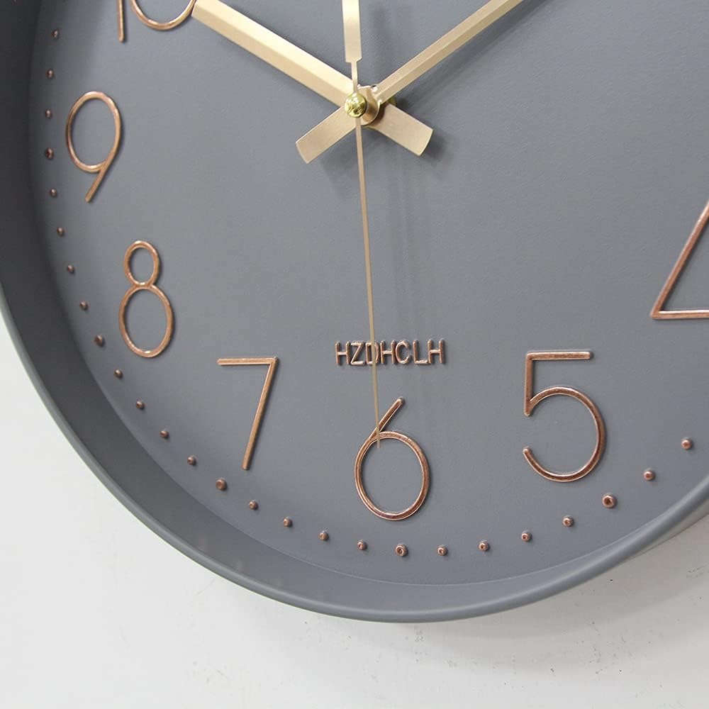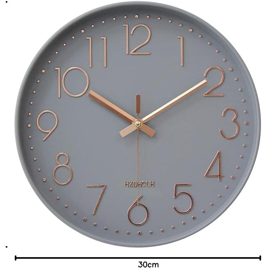 Ceas de perete HZDHCLH, 30 cm, silentios, culoare gri si auriu