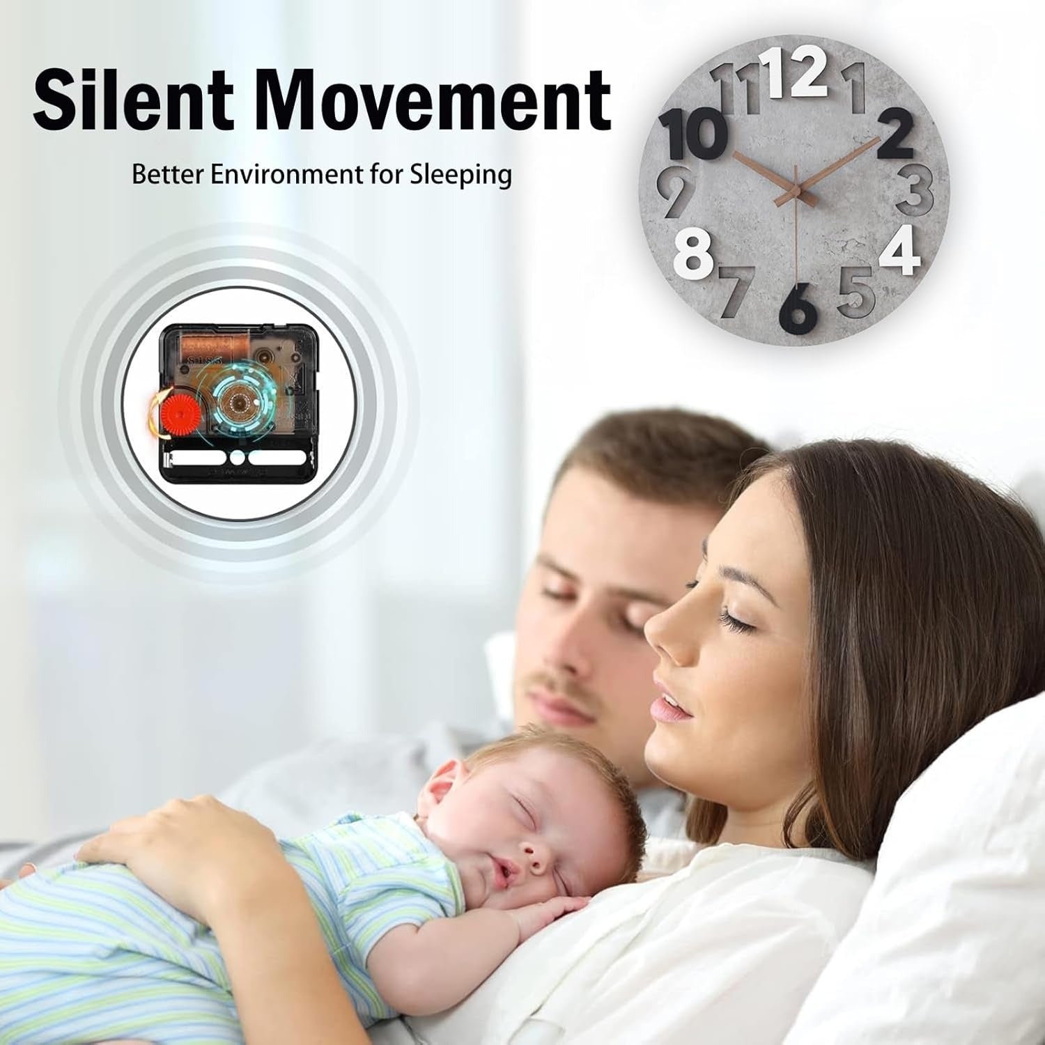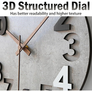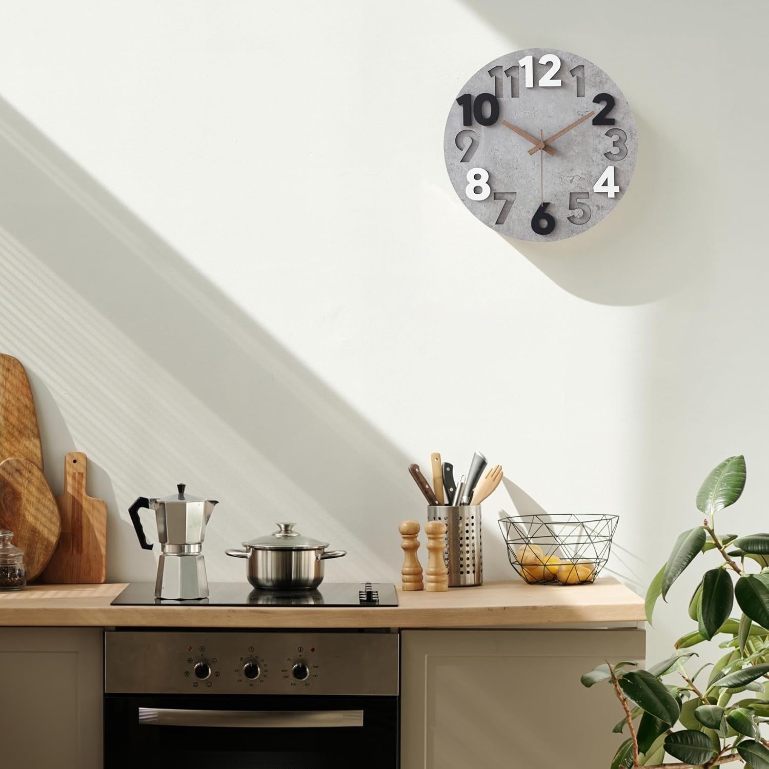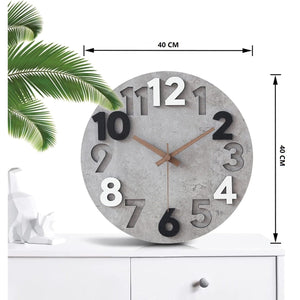 Ceas de perete Stellarize, silentios 30 cm, rotund, lemn MDF, cifre 3D, fara ticait, modern, gri