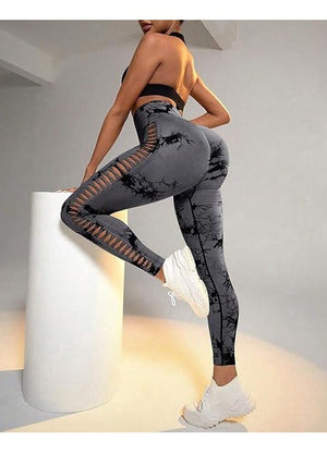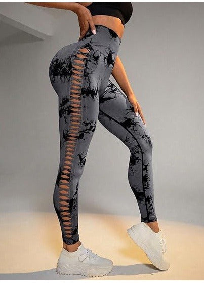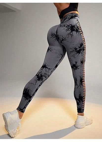 Colanti sport pentru femei RIOJOY, Scrunch Butt Push Up, Tie-dye, Opaci, Talie Inalta, marimea M, culoare Gri inchis