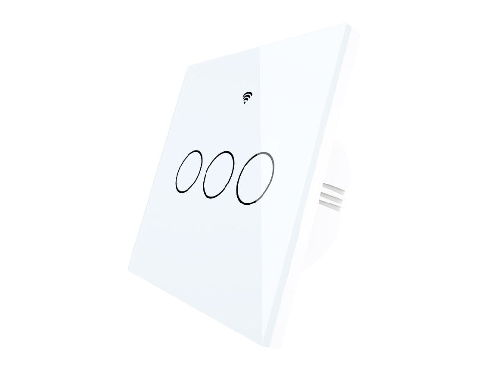 Comutator Smart, Cu Panou din Sticla, Wifi, 10 A, Trei Canale, Alb, Nu Zero