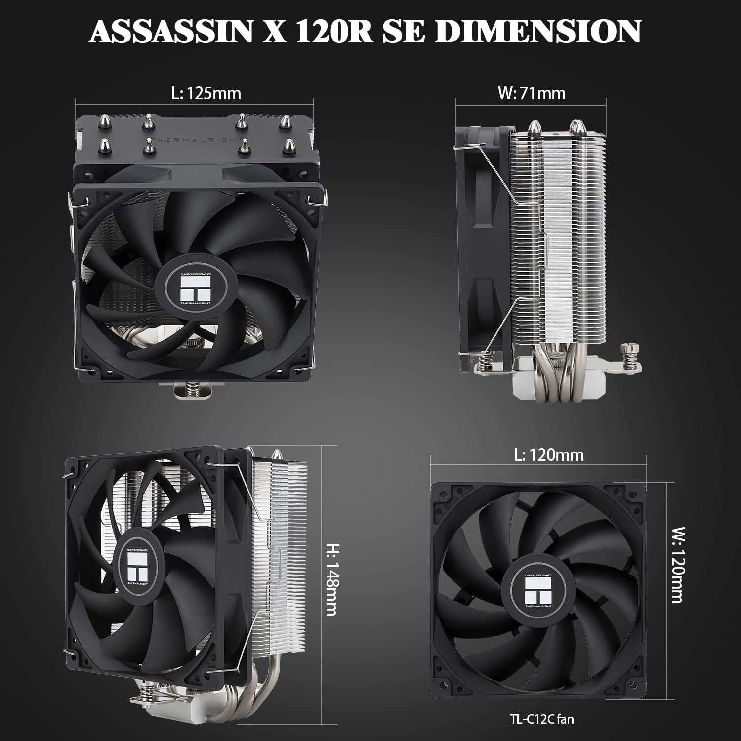 Cooler CPU Thermalright Assassin X120 Refined SE, 120x120x25mm, 4 heatpipe, ventilator PWM TL-C12C-S, compatibil AMD/AM4/AM5/Intel LGA115x/1200/1700/1851