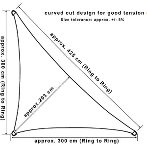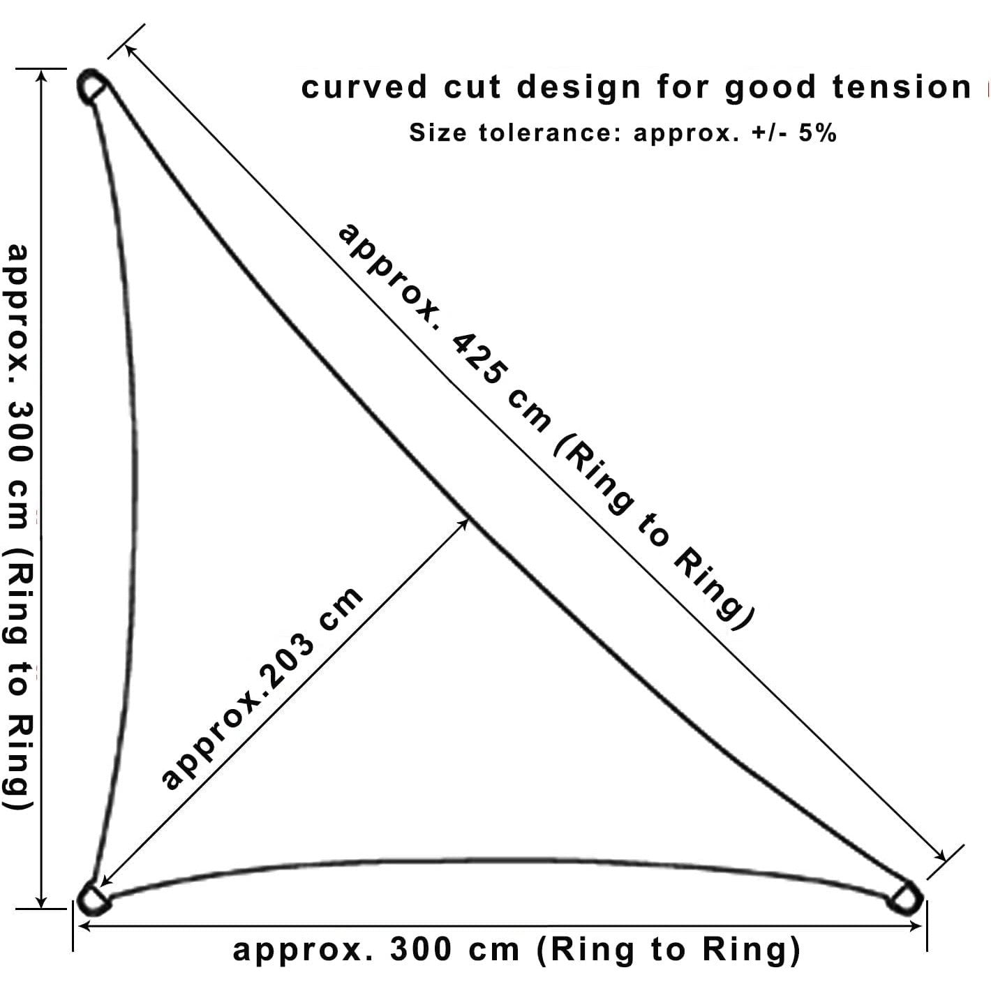 Copertina de soare triunghiulara WOLTU, 3x3x4.25 m, HDPE 180g/m², Protectie Solara si UV 85%, franghie inclusa, crem