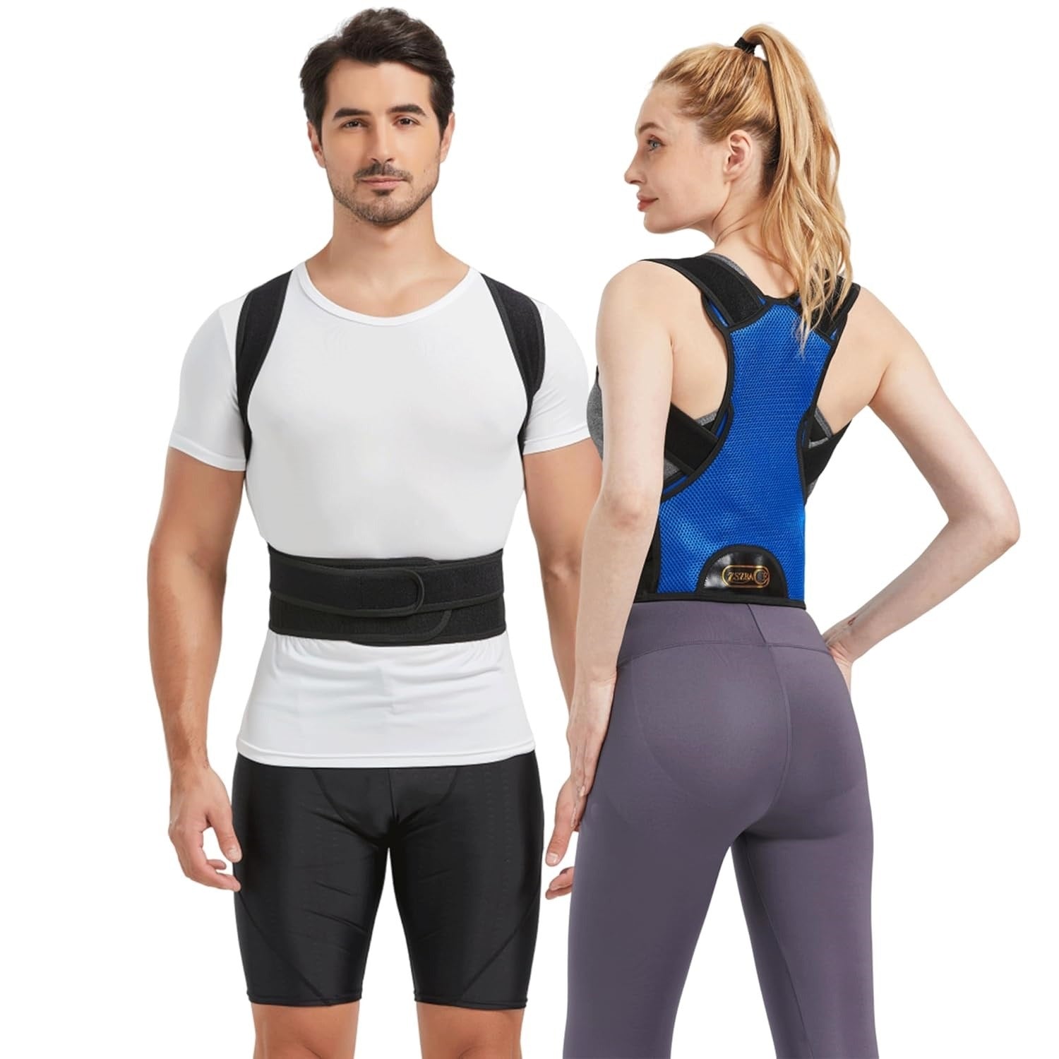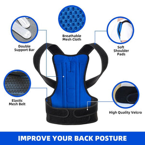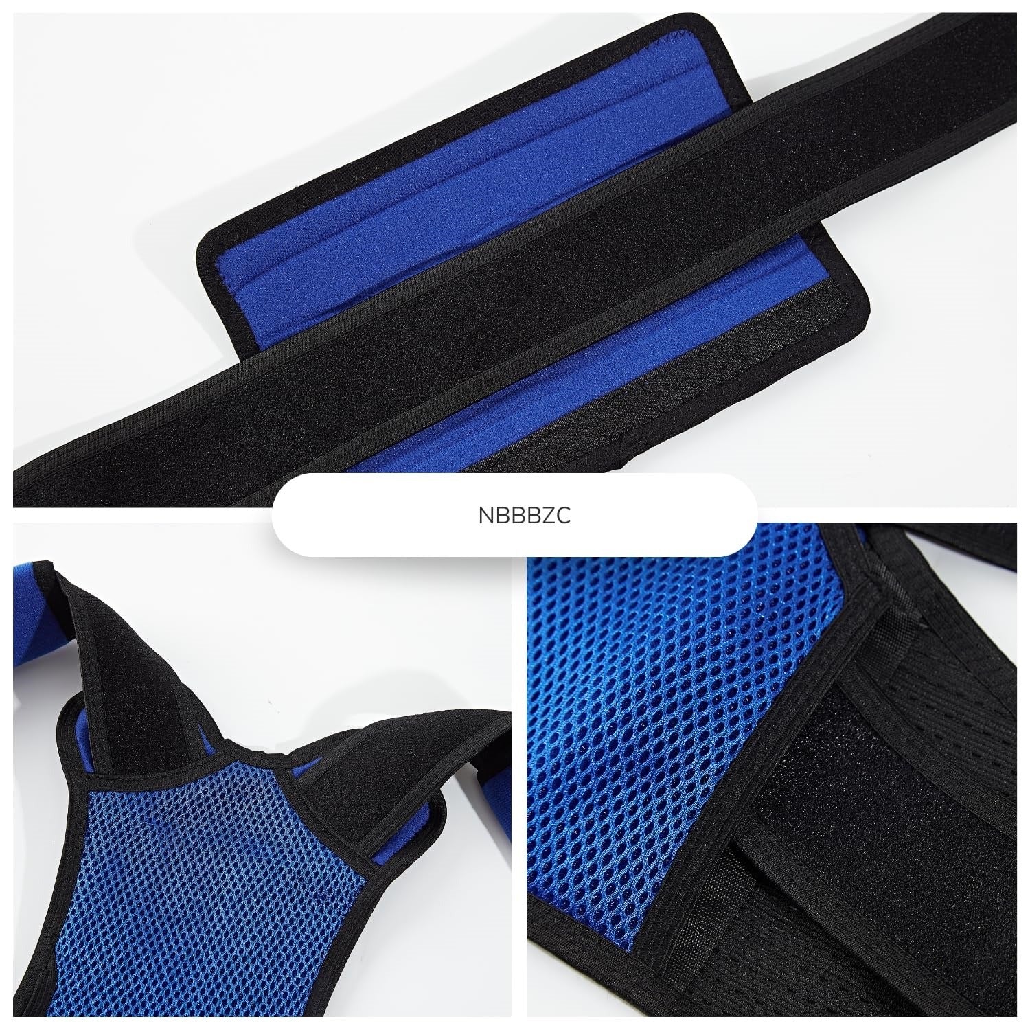 Corector de postura Profesional NBBBZC, Unisex, banda lombara pentru suport spate, pentru umeri, respirabil, reglabil, marimea M 80-95 cm, culoare albastru si negru