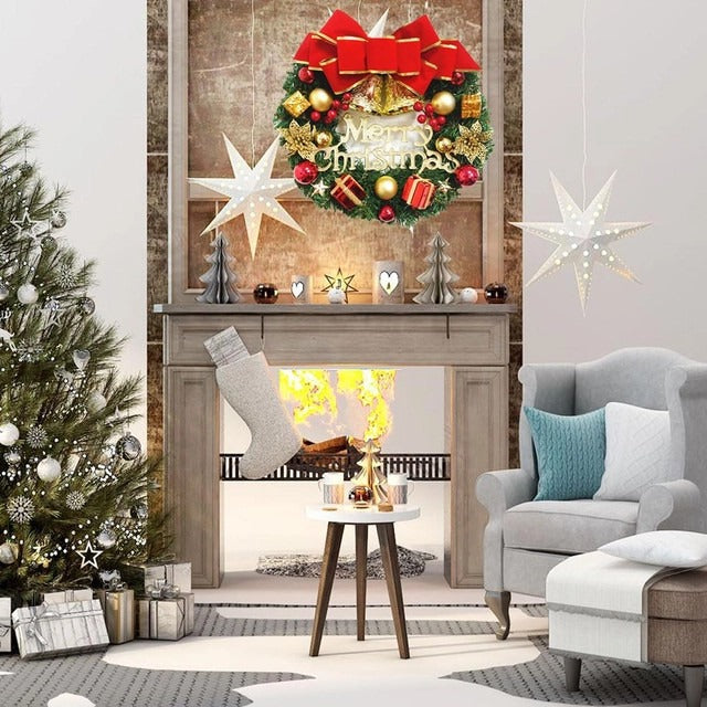 Coronita Craciun artificiala, 30 cm, mesaj "Merry Christmas"