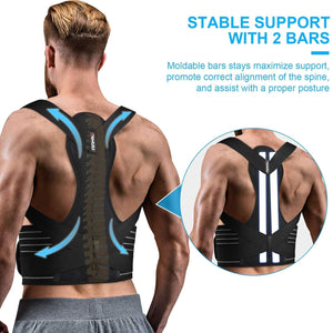 Corset corector postura ZINUU, reglabil, cu suport metalic, unisex, marime 114-130 cm, negru