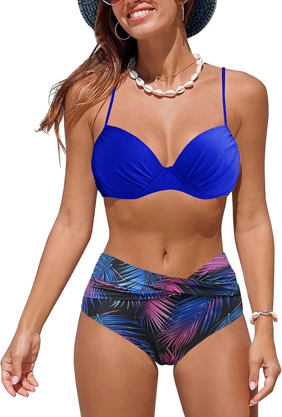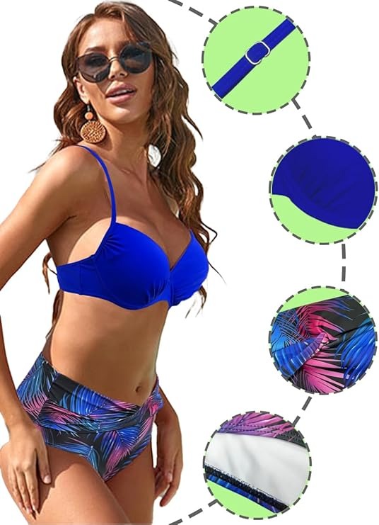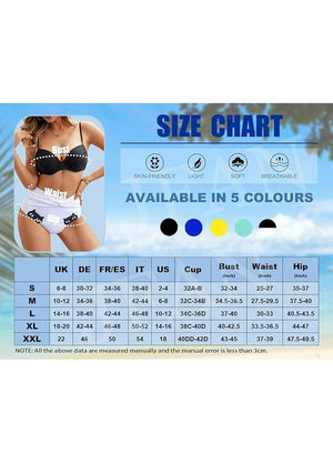 Costum de baie dama JFAN, 2 piese, marimea XL, push-up cu talie inalta, imprimeu modern, efect modelator, slip cu snur