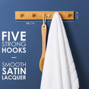 Cuier din bambus LARHN, 5 agatatori, 43x6 cm, natur