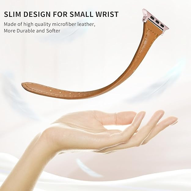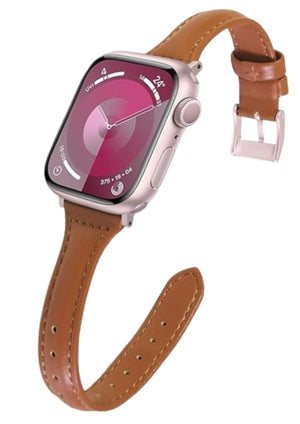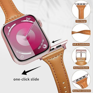 Curea de Smartwatch Lovmunia, Subtire, Piele, compatibila cu Apple Watch Ultra/SE/9/8/7/6/5/4/3/2/1 - 38/40/41/42/44/45/49MM, culoare Maro cu Auriu