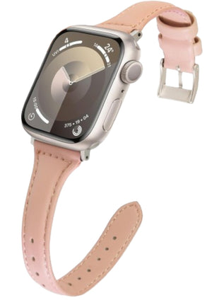 Curea de Smartwatch Lovmunia, Subtire, Piele, compatibila cu Apple Watch Ultra/SE/9/8/7/6/5/4/3/2/1 - 38/40/41/42/44/45/49MM, culoare Roz cu Argintiu