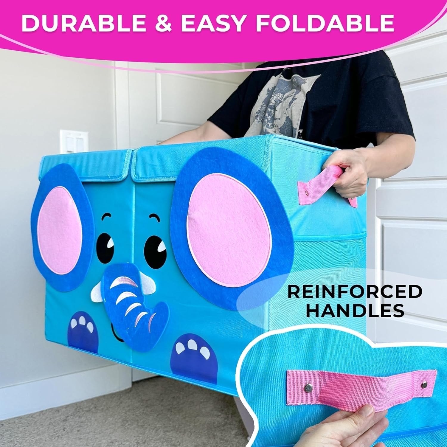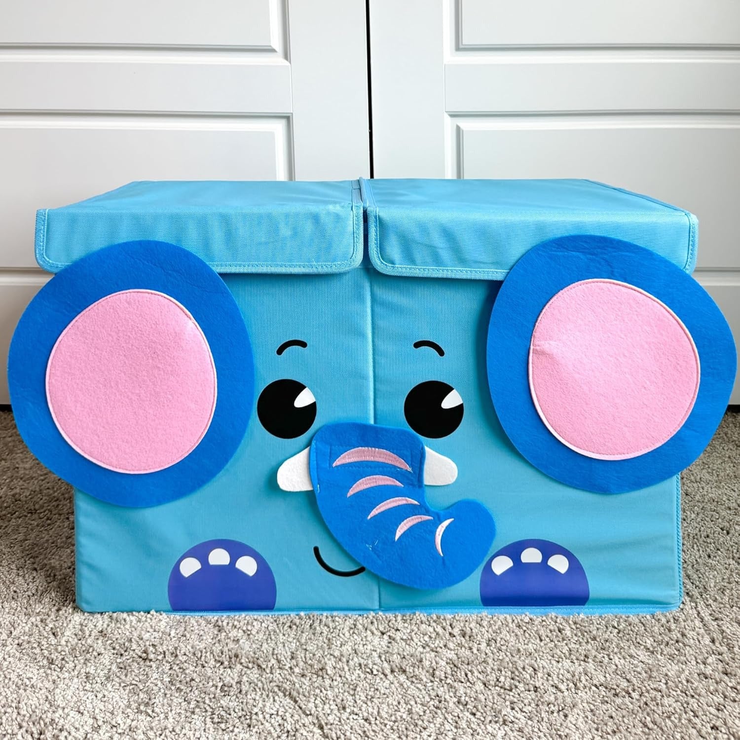 Cutie depozitare QUOKKA, pliabila, capac si manere, 63x41x33 cm, material textil, design Elefant, albastru