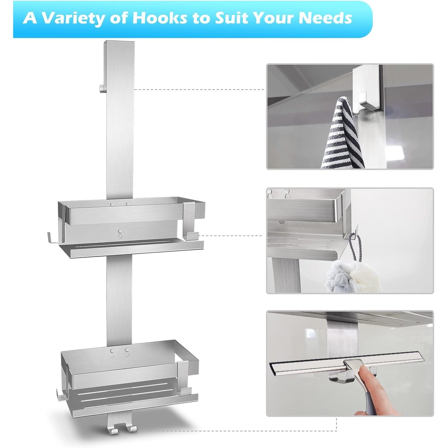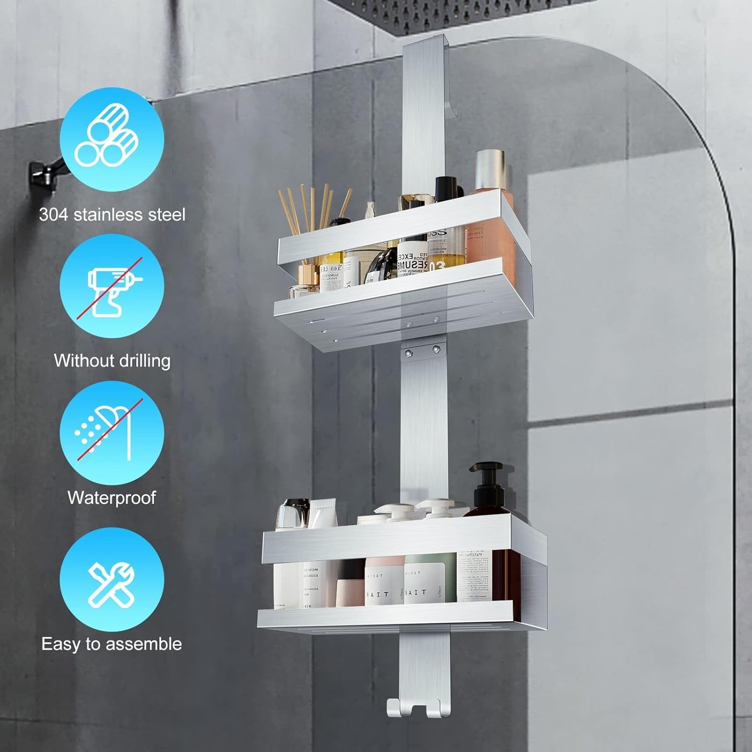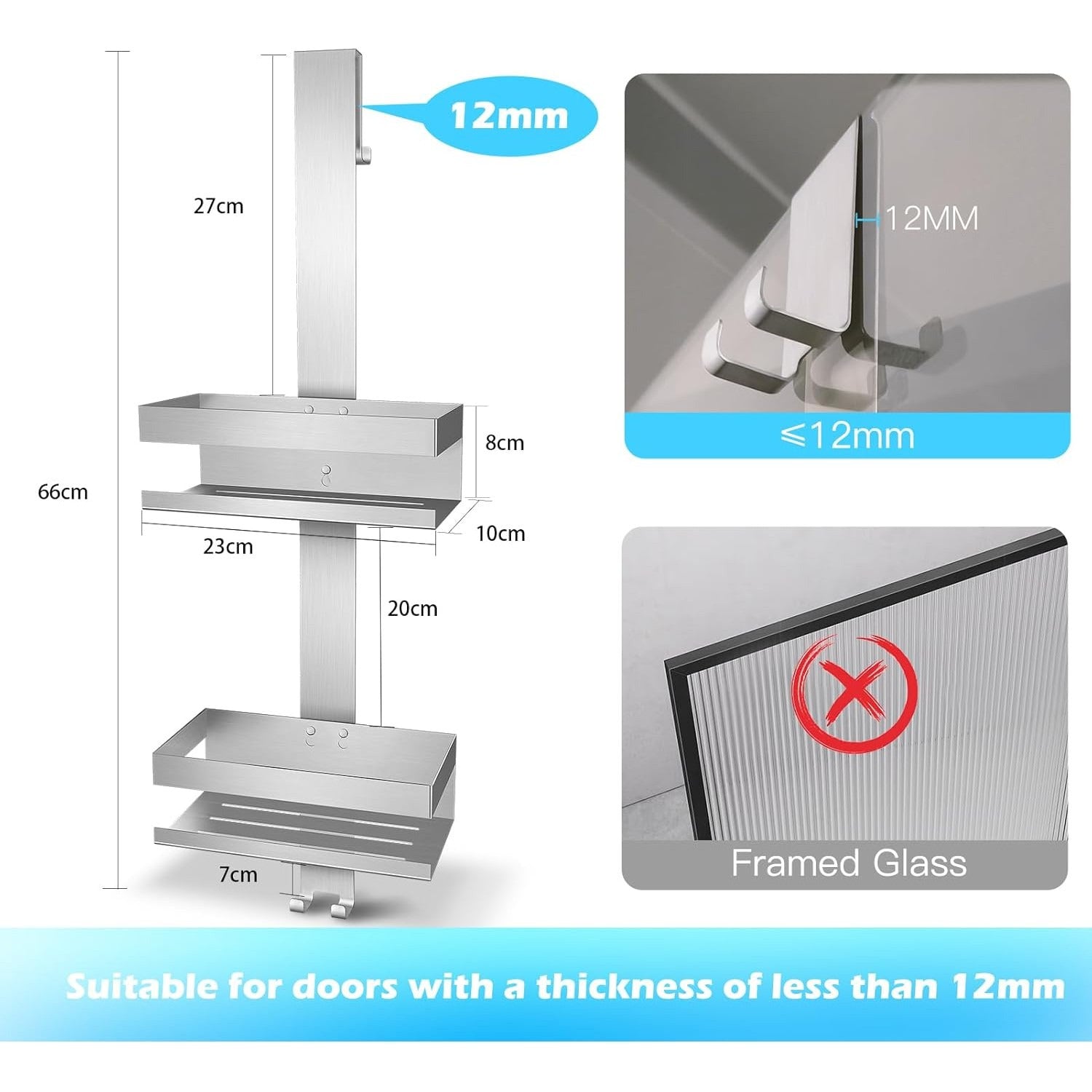 Etajera de dus UUlioyer, 2 rafturi, inox SUS304, 50x23x10 cm, fara gaurire, finisaj lucios, argintiu