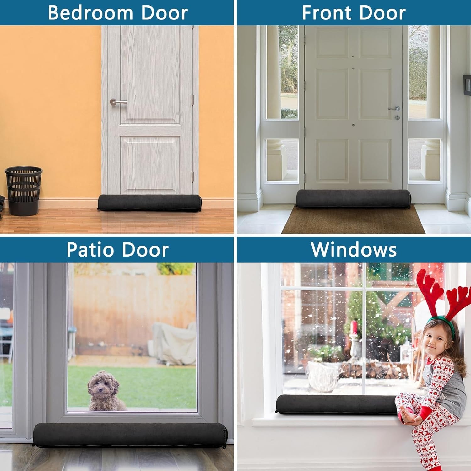 Garnitura pentru usa HooTown, 87 cm, impotriva curentului si aerului, textil, culoare negru