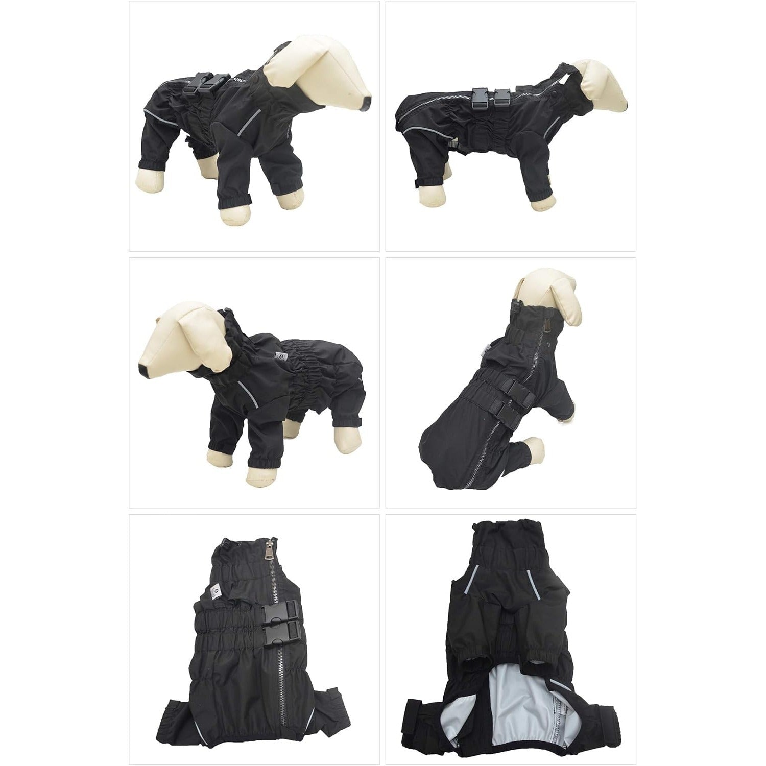 Haina impermeabila pentru caini Lovelonglong, M, nylon, pentru caini de talie medie, interior fleece, benzi reflectorizante, culoare negru