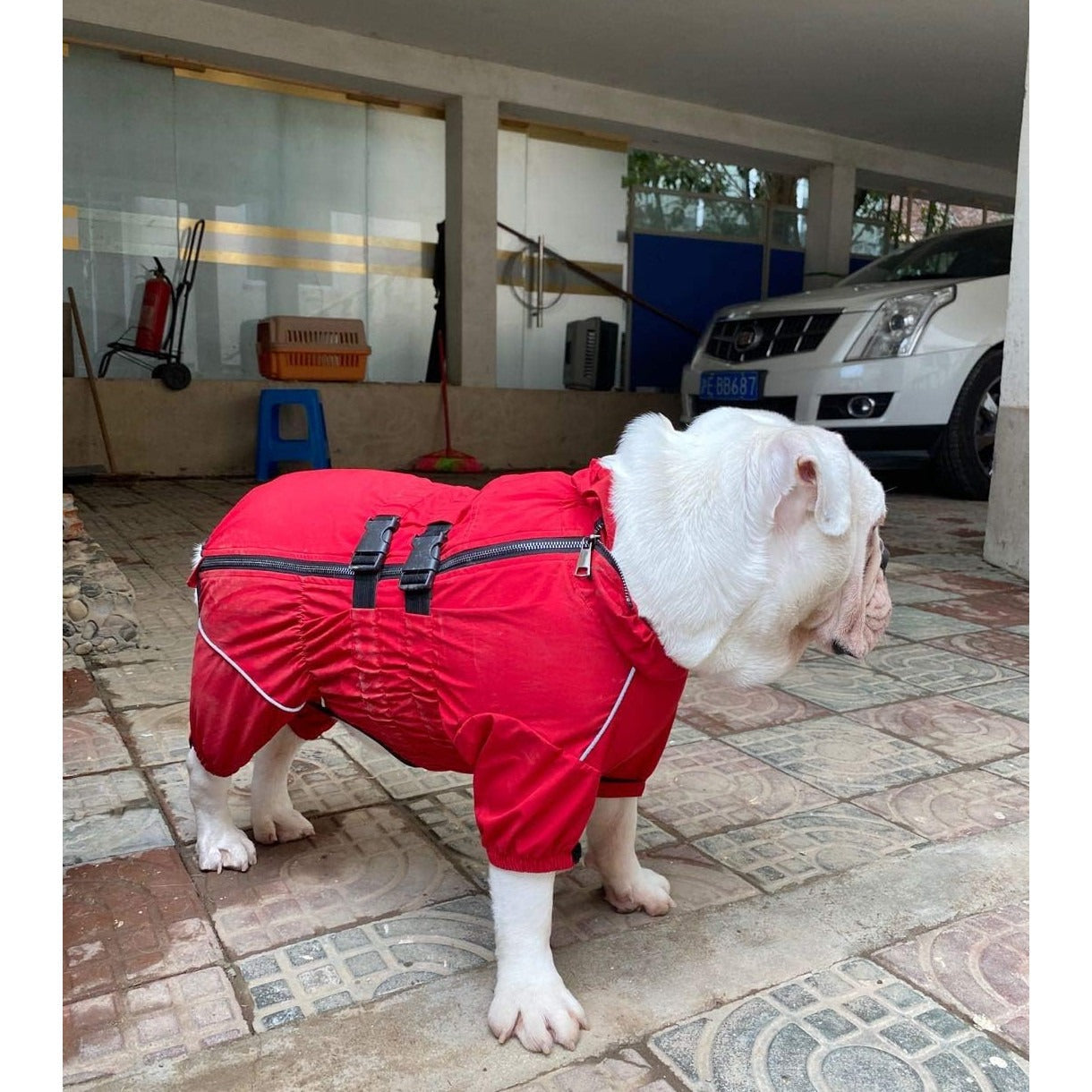 Haina impermeabila pentru caini Lovelonglong, S, nylon, interior fleece, benzi reflectorizante, culoare rosu