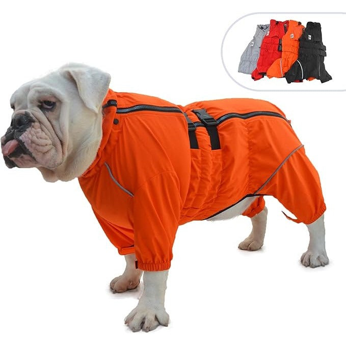 Haina impermeabila pentru caini Lovelonglong, S, nylon, pentru caini de talie mica, interior fleece, benzi reflectorizante, culoare portocaliu