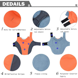 Haina impermeabila pentru caini Mile High Life, XS, interior fleece, benzi reflectorizante si inchidere velcro, portocaliu
