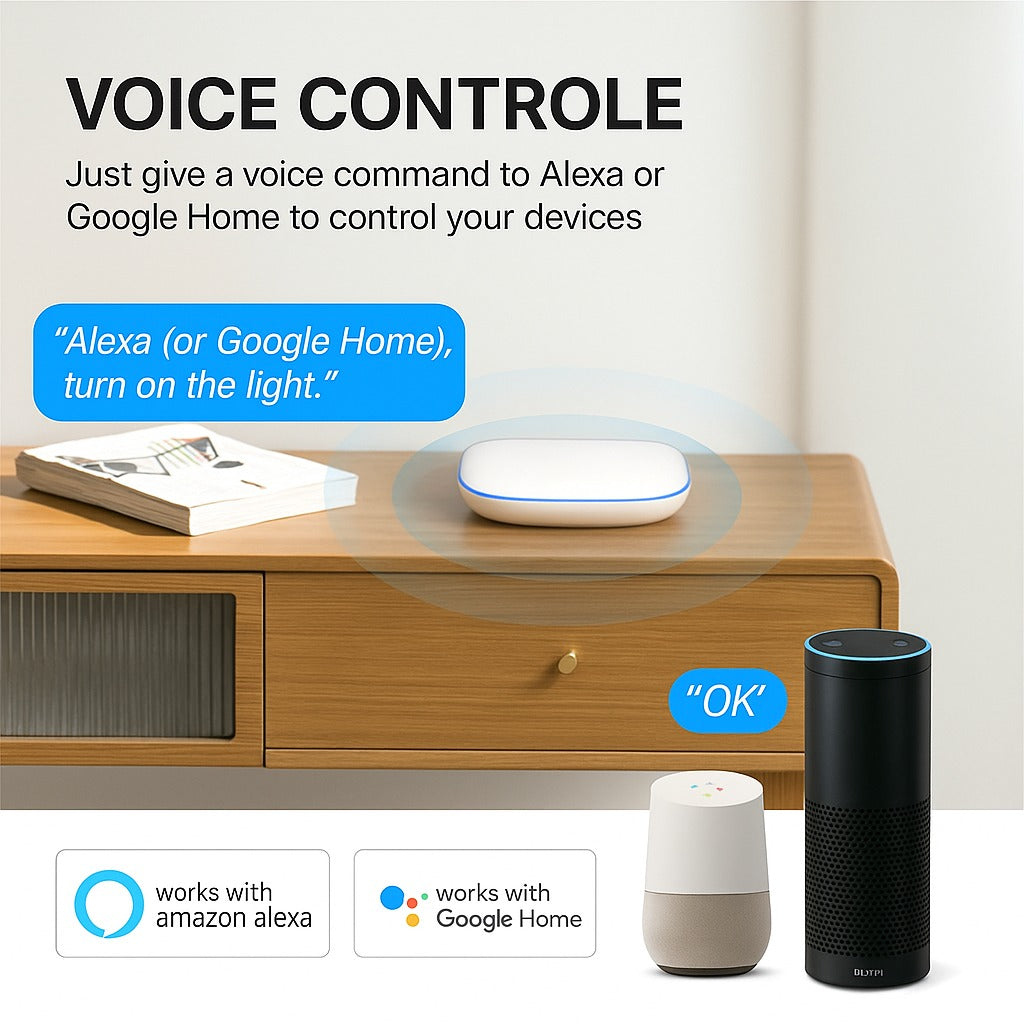 Functioneaza cu Amazon Alexa si Google Home pentru control vocal