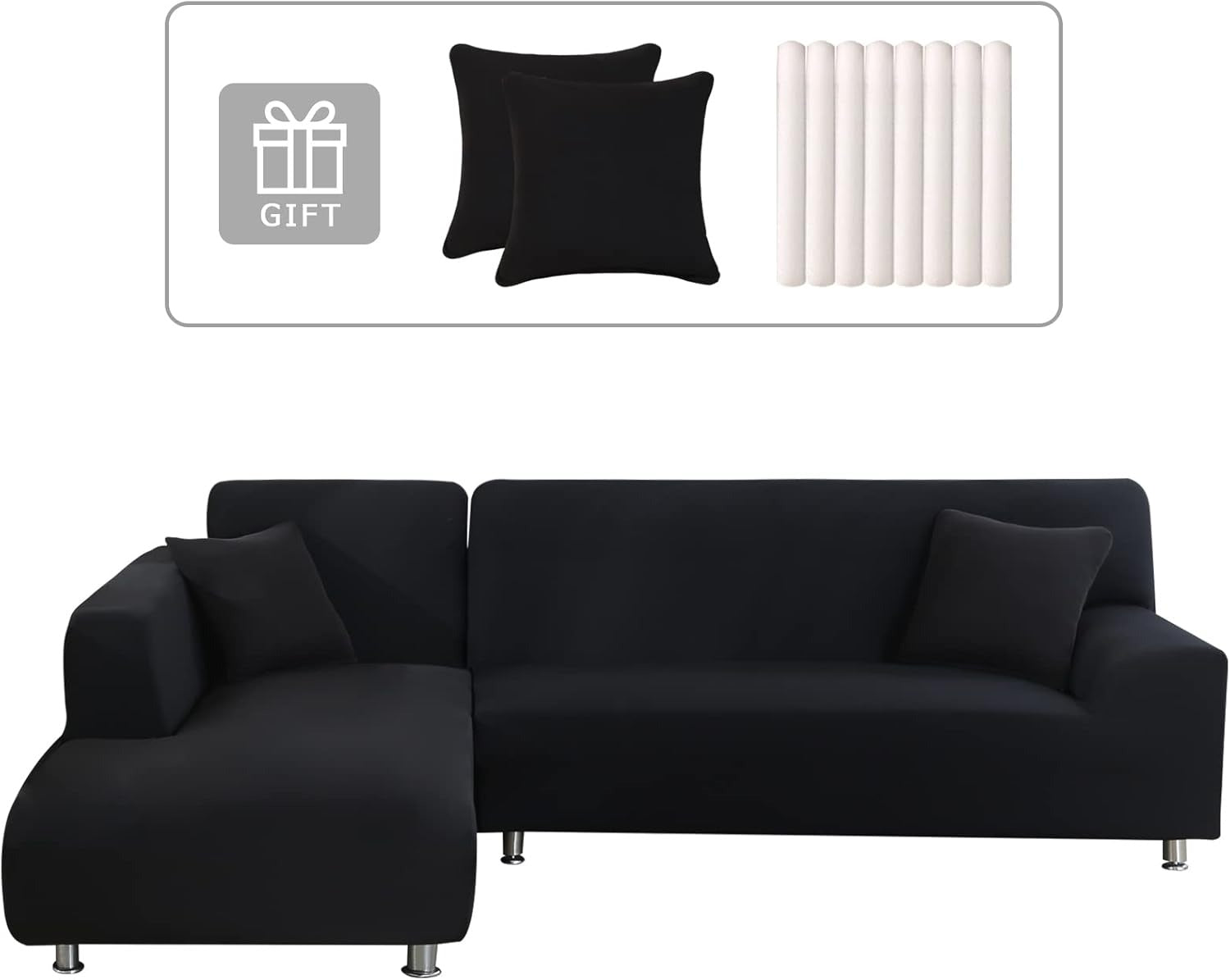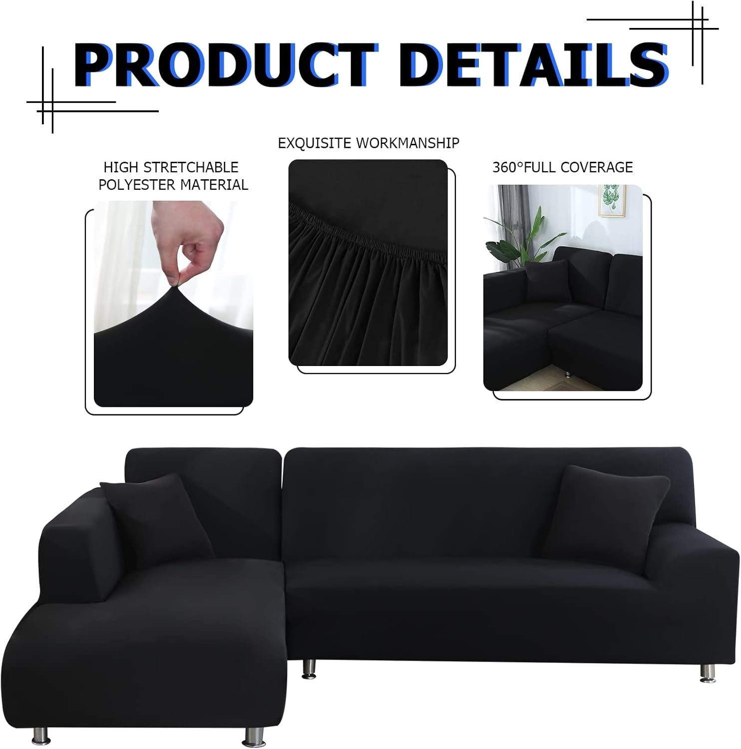 Husa canapea Lydevo, 3+4 Locuri, Poliester, Antizgariere, Lavabila, Universala, culoare Negru