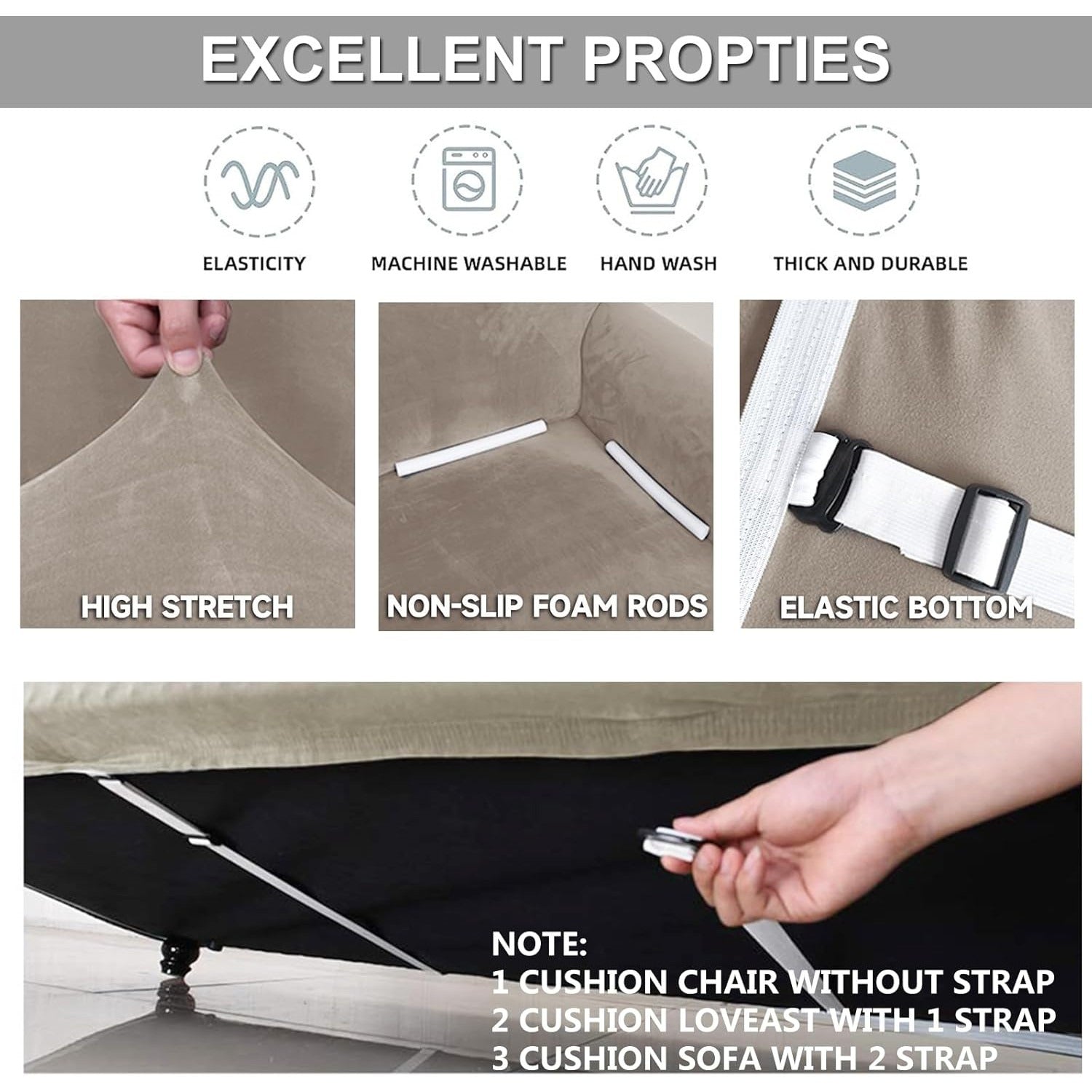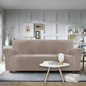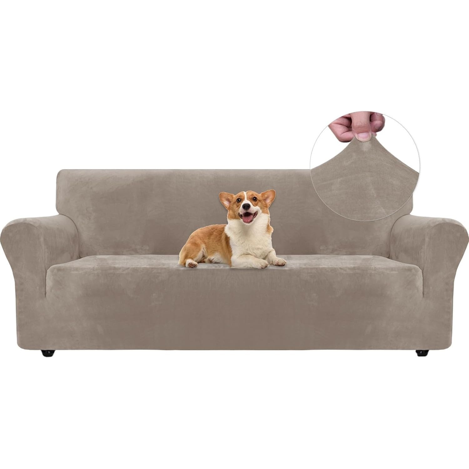 Husa canapea Ystyle, 3 locuri, catifea moale, elastica, antiderapanta, lavabila, cu brate, culoare Khaki