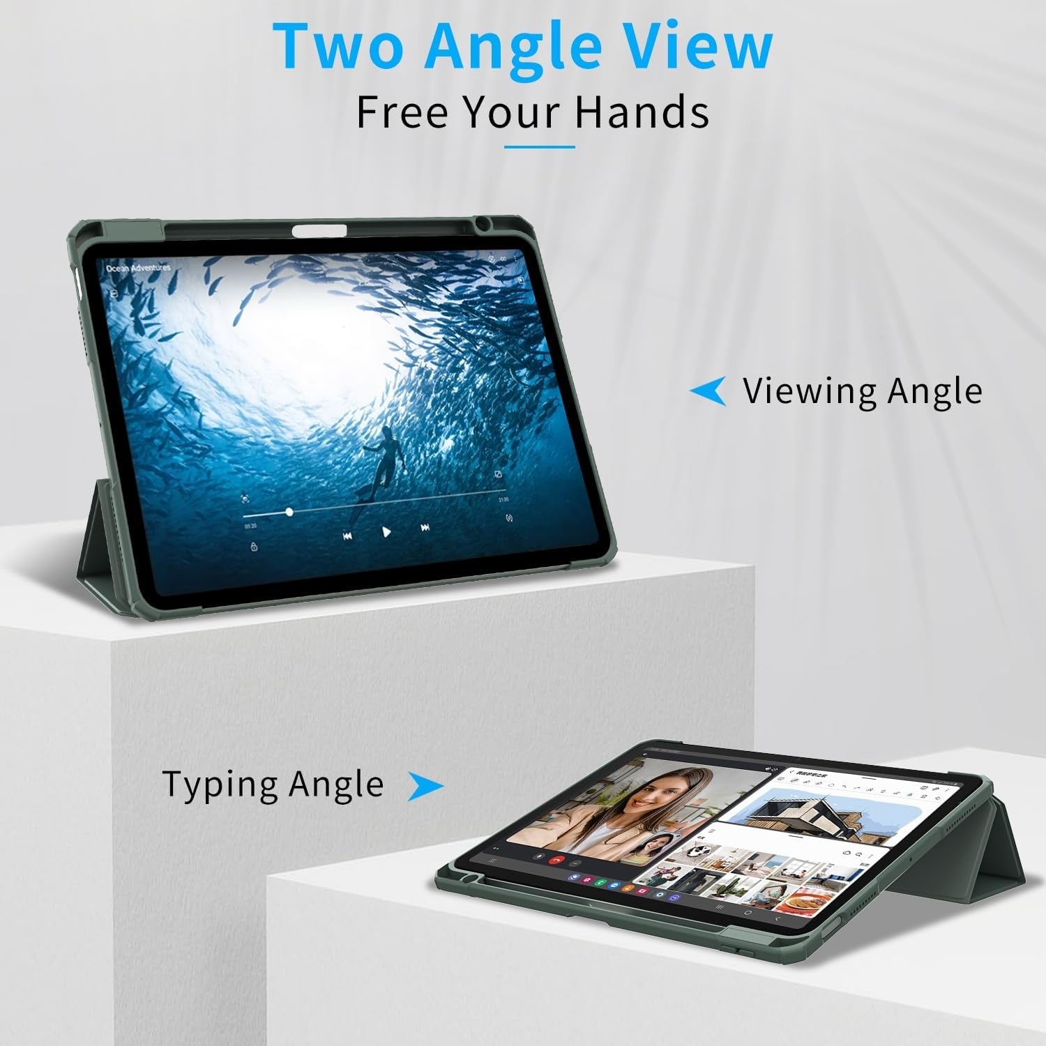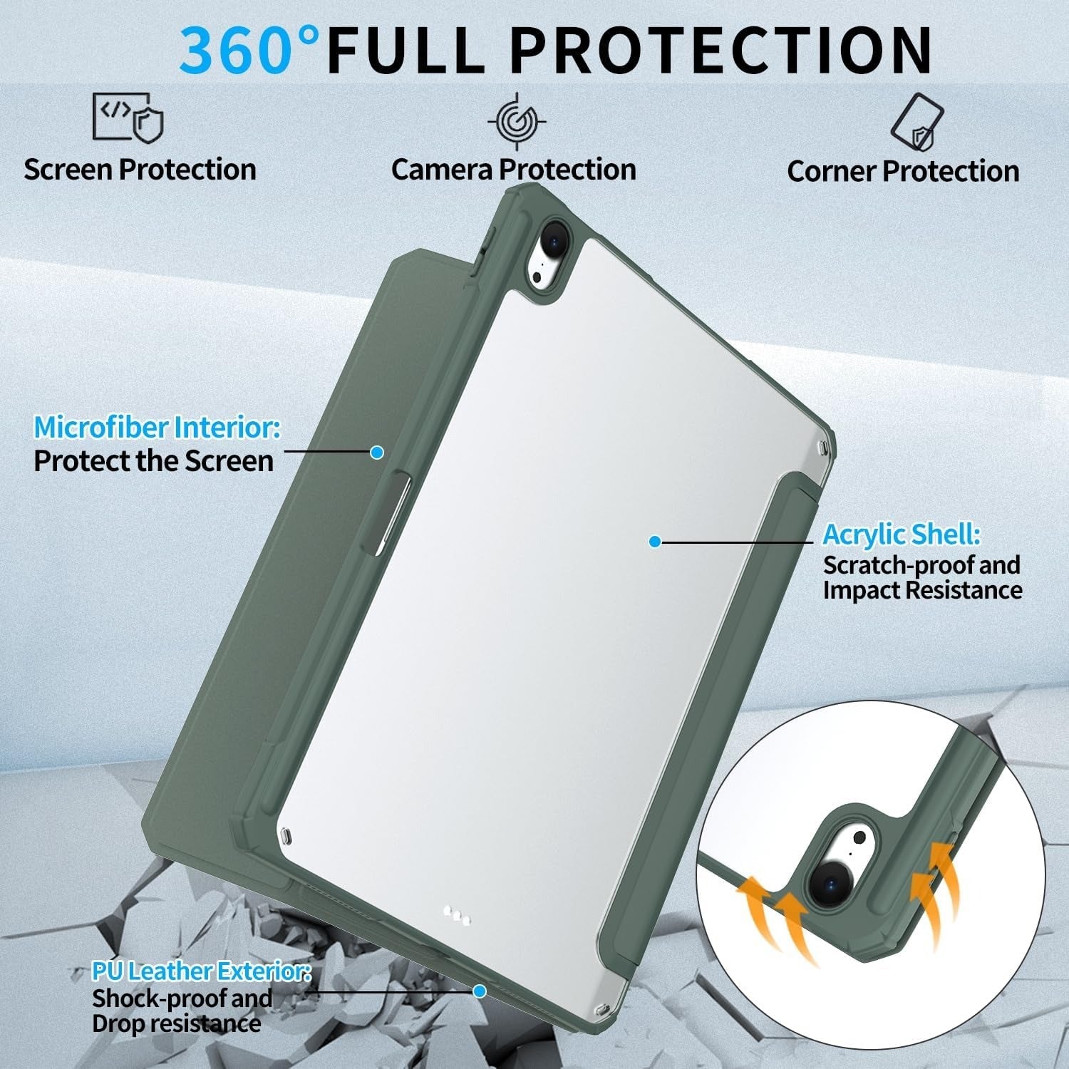 Husa Patamiyar compatibila cu iPad Air 11" M2 2024, Suport pentru Creion, Rigida cu Stand, Functie Auto Sleep/Wake, culoare Verde