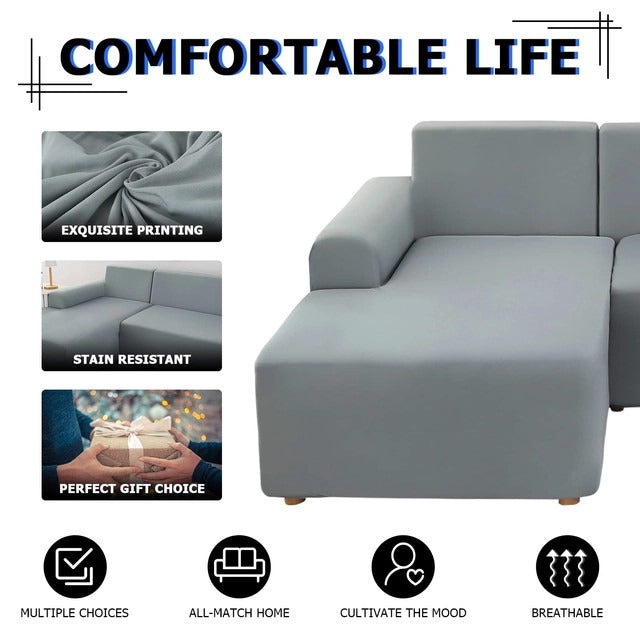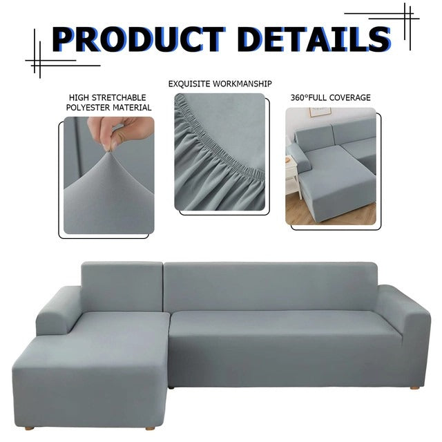 Husa pentru canapea Lydevo, 2+3 locuri, elastica, lavabila, culoare gri deschis