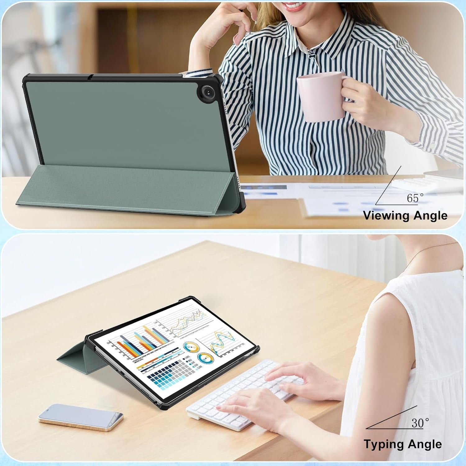 Husa pentru Lenovo Tab M10 Plus 10.6'' 2022 Patamiyar, Piele PU, Usoara, Functie Sleep/Wake, culoare Verde