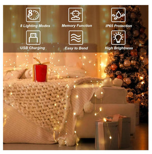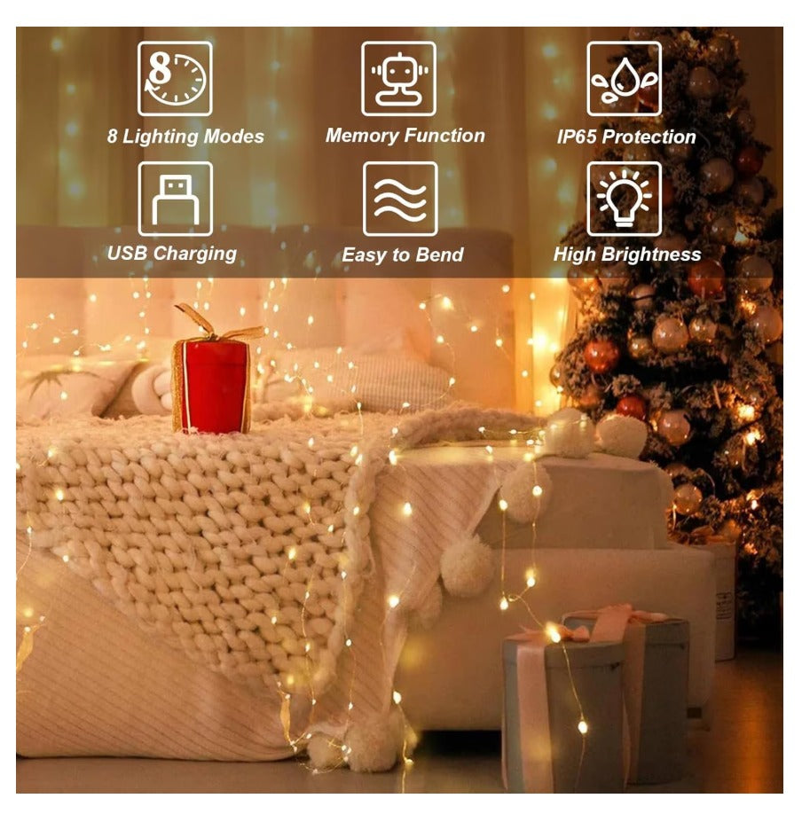 Instalatie de craciun FREMON, 8 moduri, LED, impermeabile IP65, culoare alb cald, functie de memorie, 5 metri