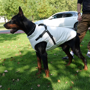 Jacheta impermeabila pentru caini Lovelonglong, interior din fleece, marime 3XL, moale, cu ham integrat, reflectorizant, culoare alb