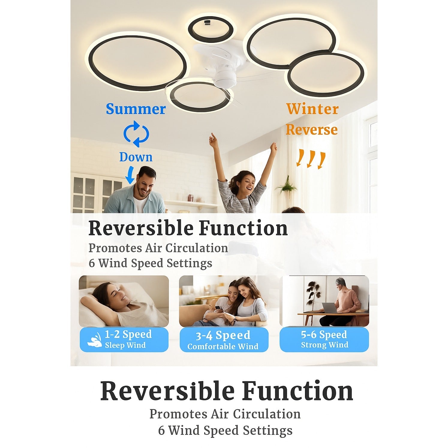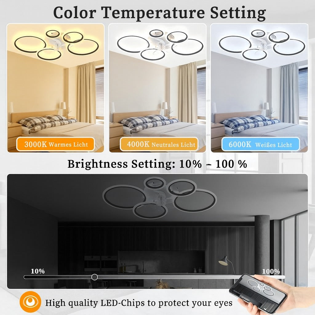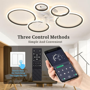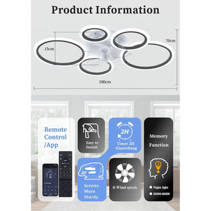 Lustra cu ventilator LED MiiR, 145W, 6400LM, 100 cm, telecomanda si aplicatie, 3 temperaturi culoare, 6 viteze, dimabila, negru