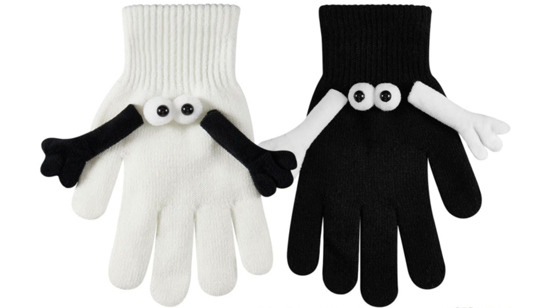 Manusi de Iarna Amuzante SATINIOR, Magnetice, Model 3D, Alb/Negru