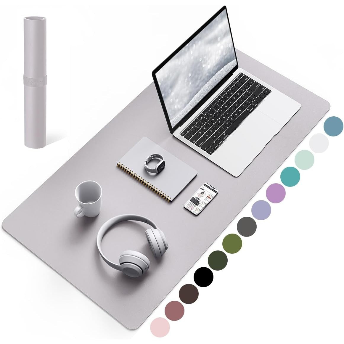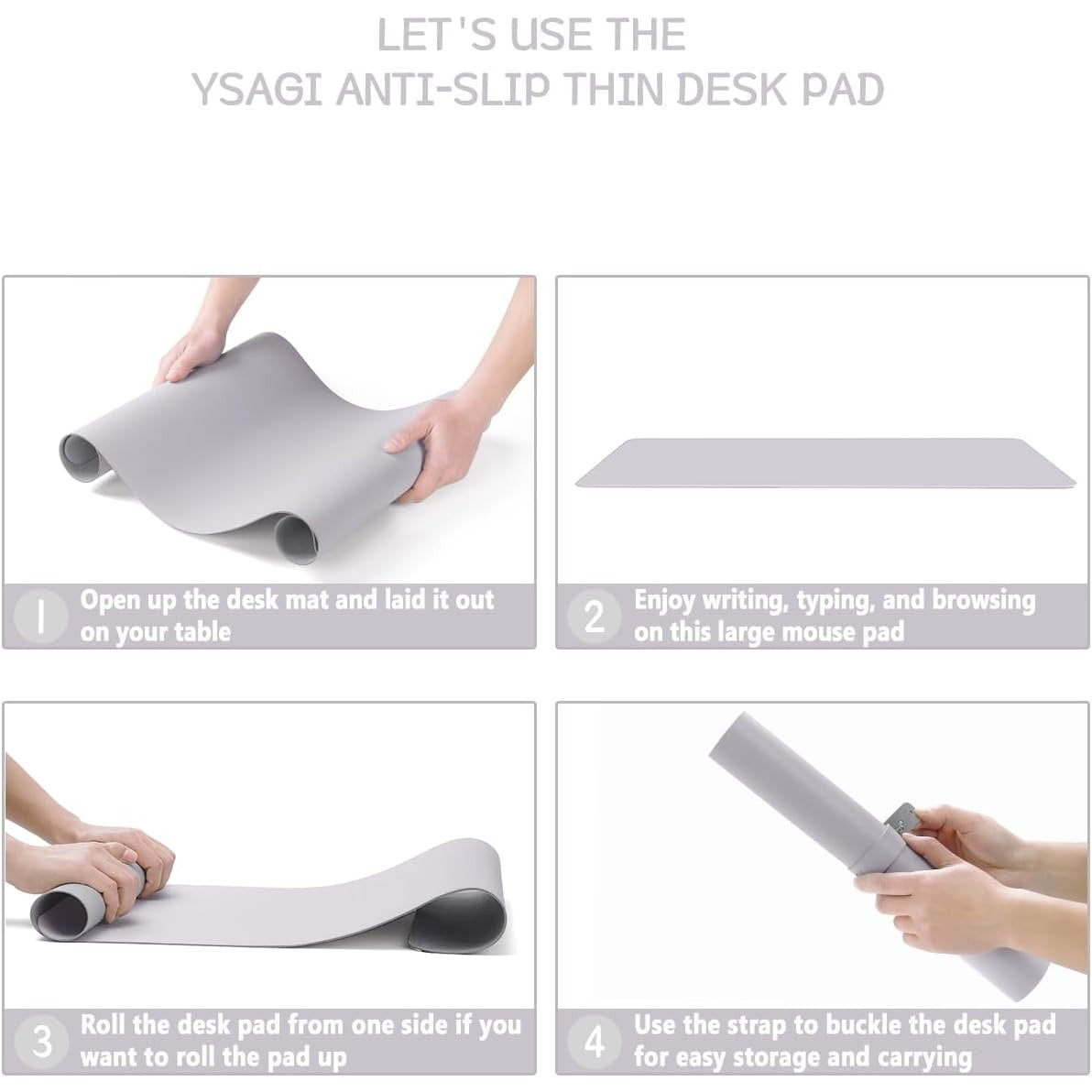 Mousepad, YSAGi, multifunctional, 80x40 cm, impermeabil, piele ecologica, baza antiderapanta din piele intoarsa, culoare gri
