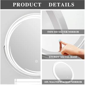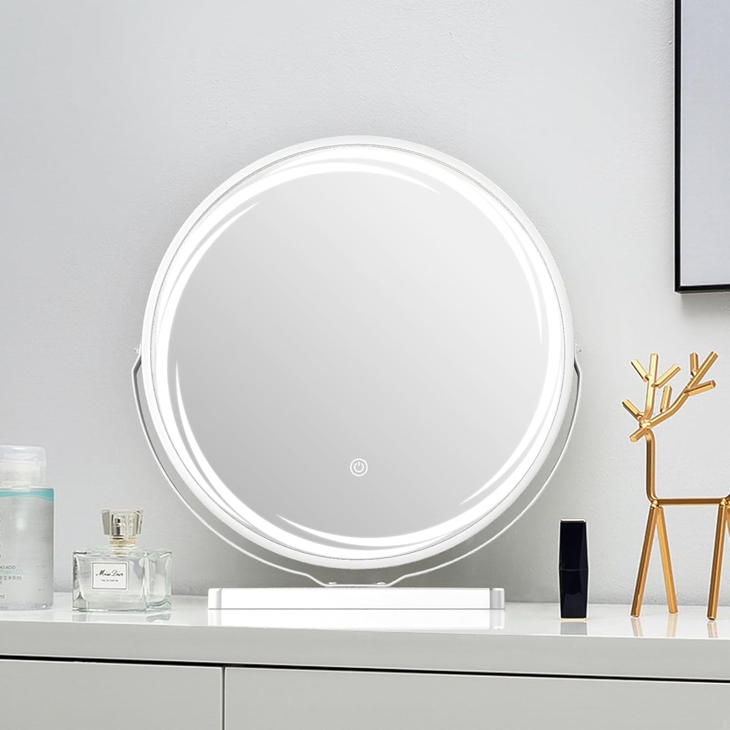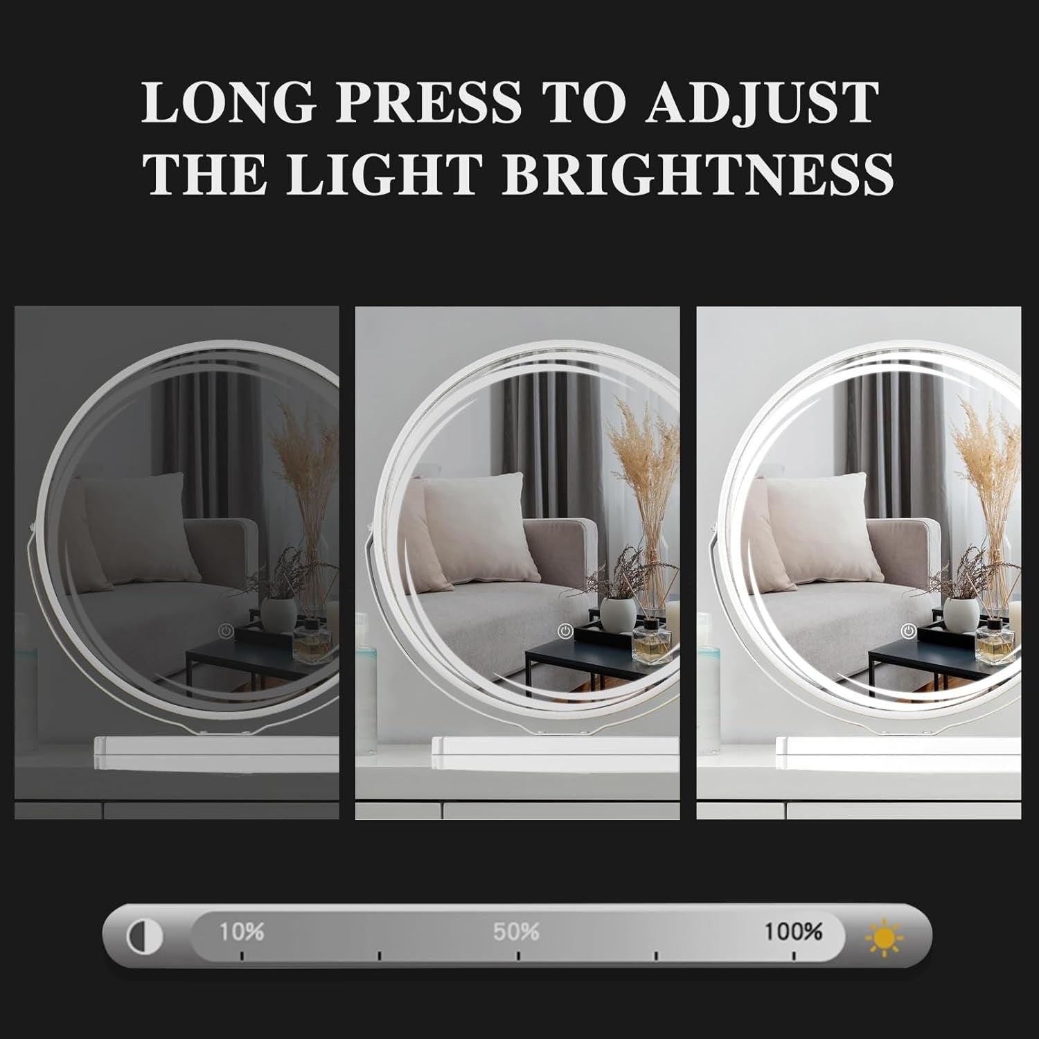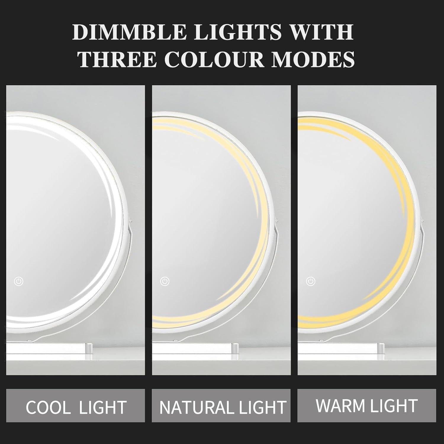 Oglinda LED YOSHOOT, Rotunda, 45 cm, 3 Moduri, Lumina Reglabila, Touch Smart, Rotatie 360°, Alba