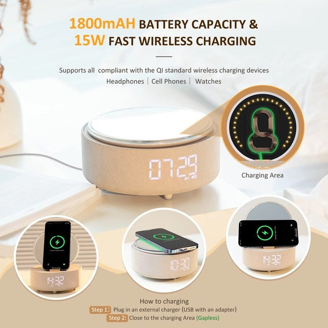 COLSUR Cadou 6 in 1 pentru femei: Incarcator wireless, oglinda LED, boxa Bluetooth, ceas cu alarma, suport telefon