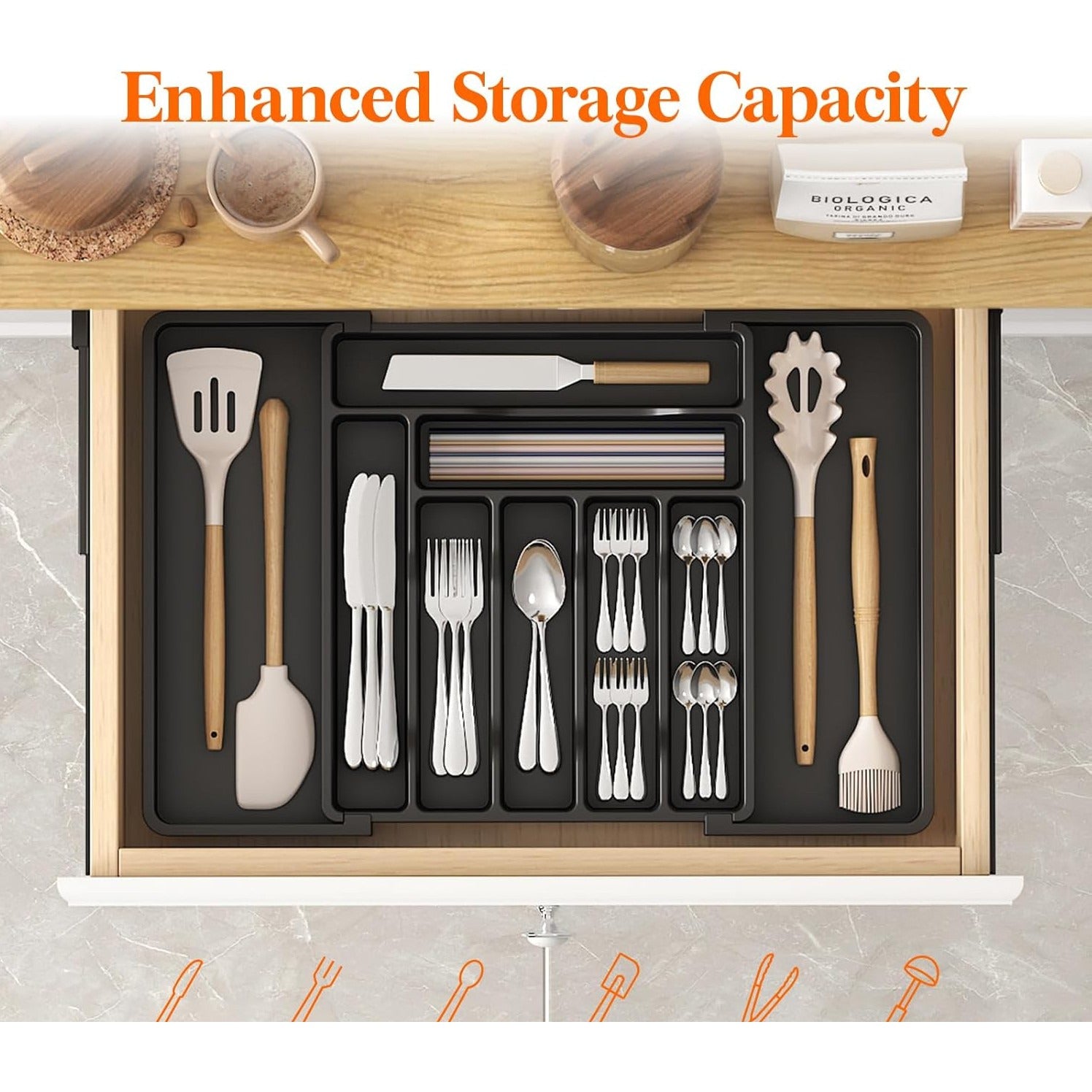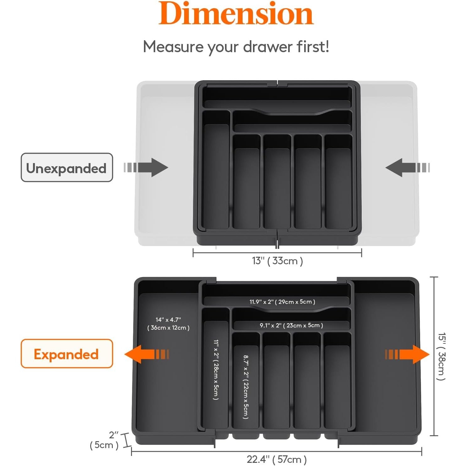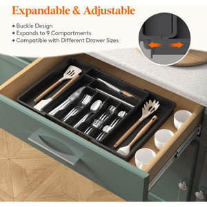 Organizator Tacamuri Lifewit, 33-57x38x5 cm, Extensibil, 9 Compartimente, Reglabile, Plastic, Negru