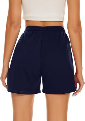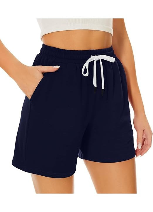 Pantaloni scurti dama HAPYWER, marimea XL, bumbac, talie inalta, culoare albastru inchis