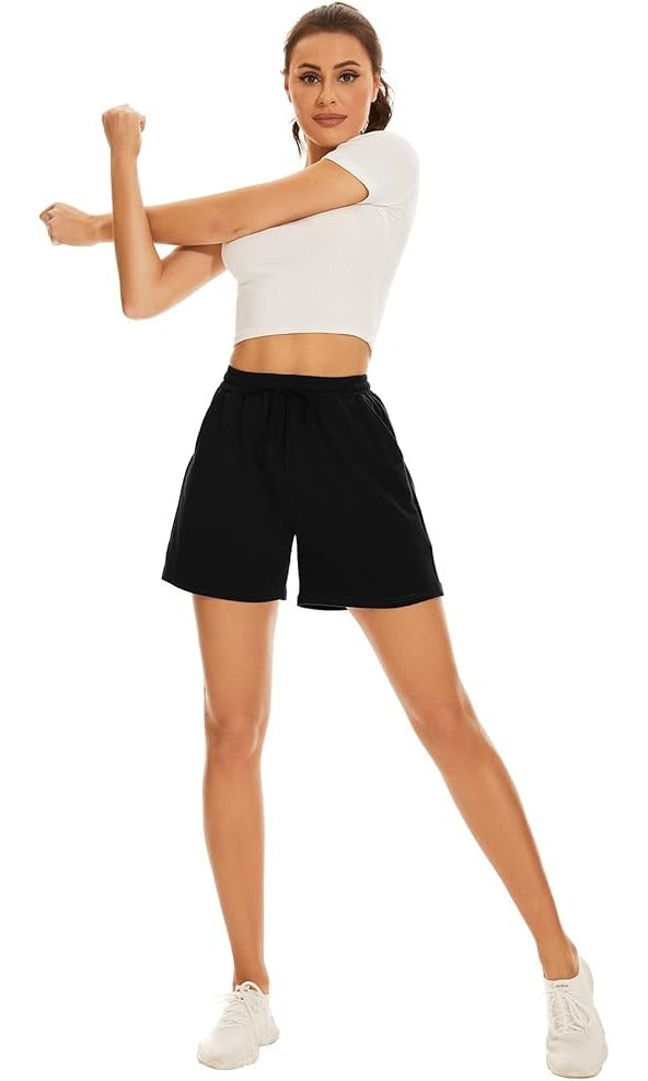 Pantaloni scurti dama HAPYWER, marimea XXL, bumbac, talie inalta, culoare negru