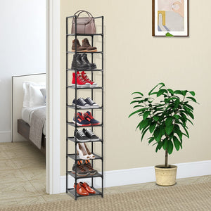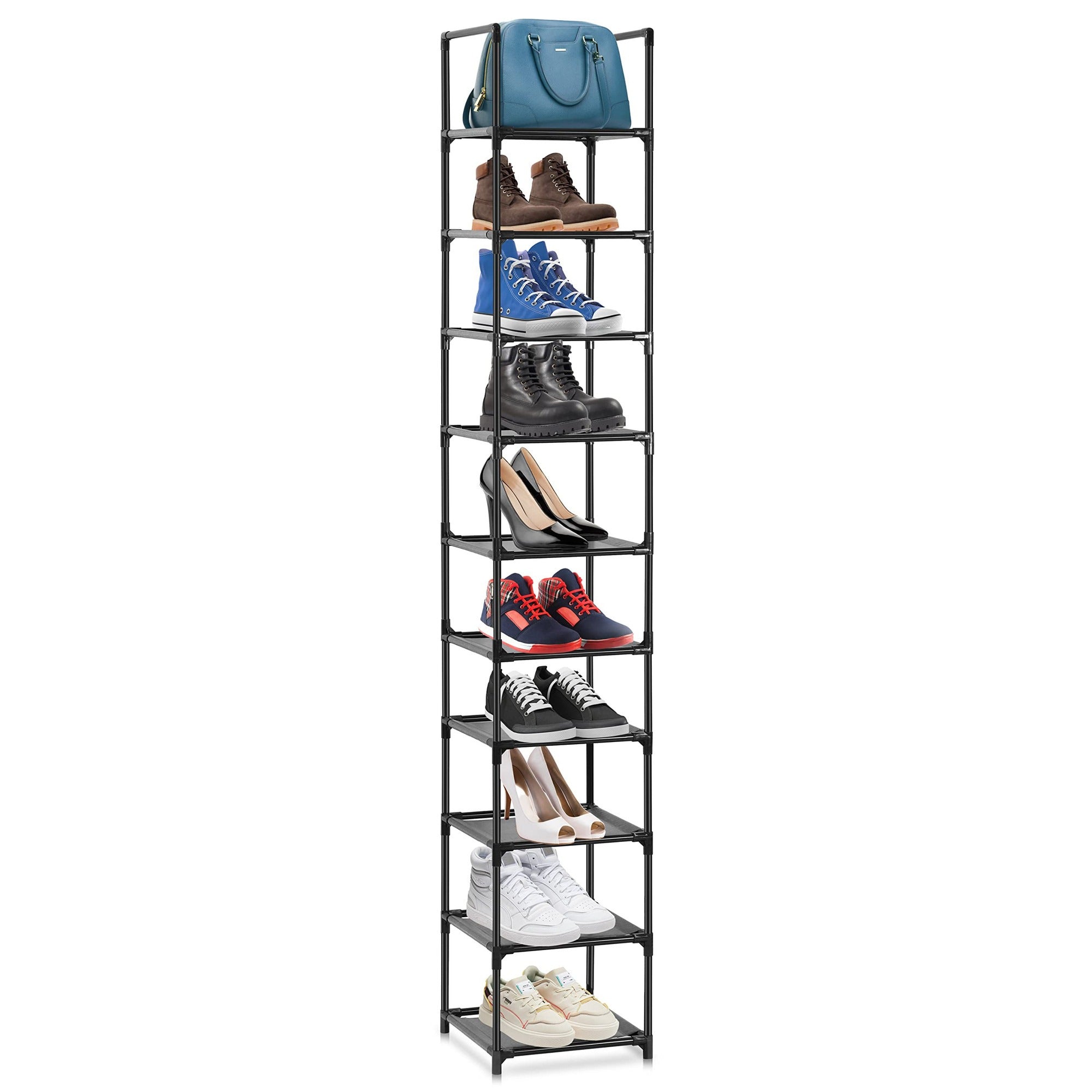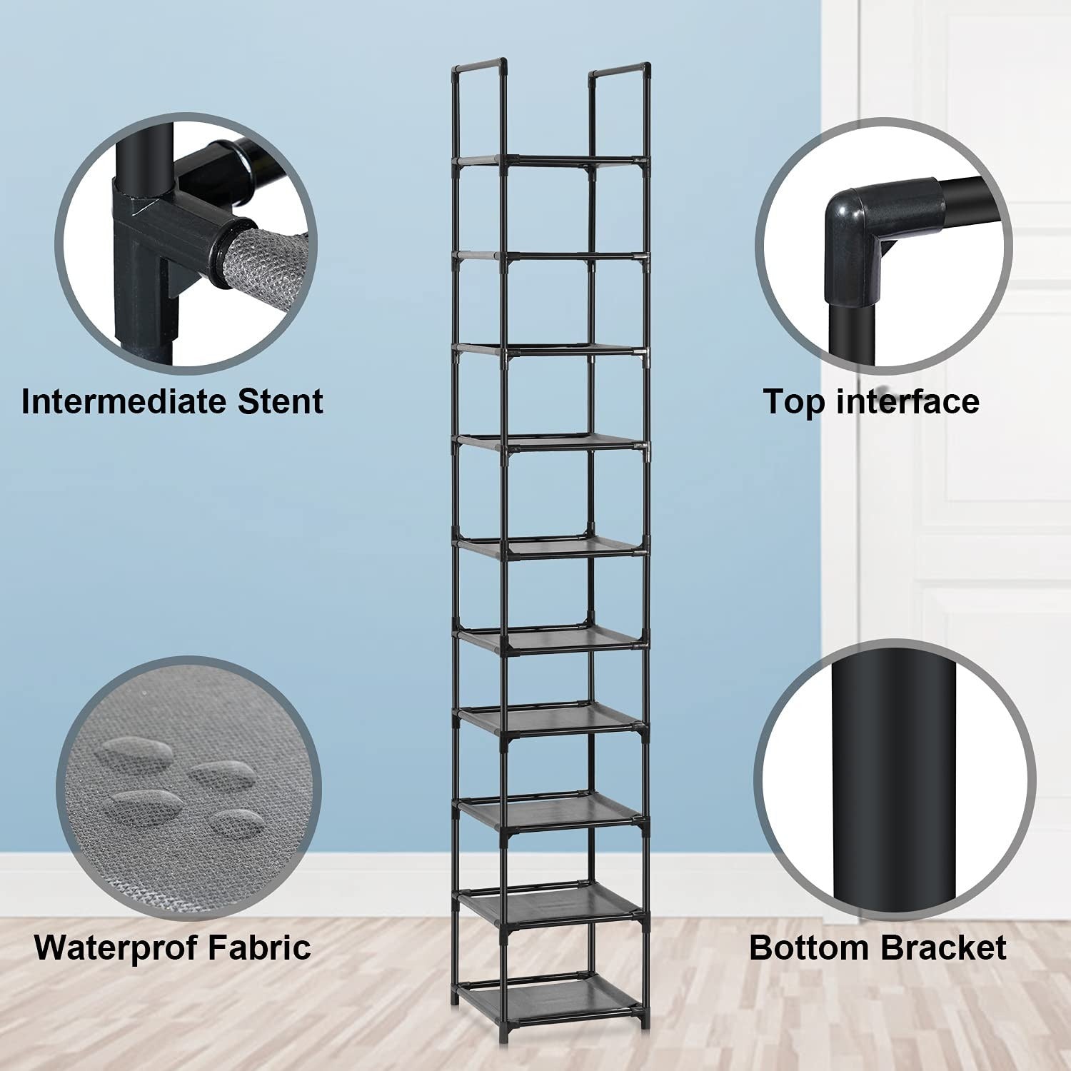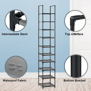 Pantofar Voency, 10 niveluri, 174x28x28 cm, metal si textil, multifunctional, usor maleabil, ajustabil, gri inchis